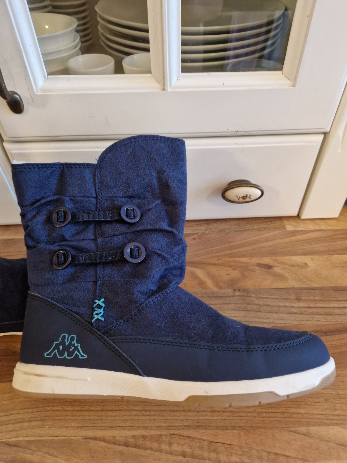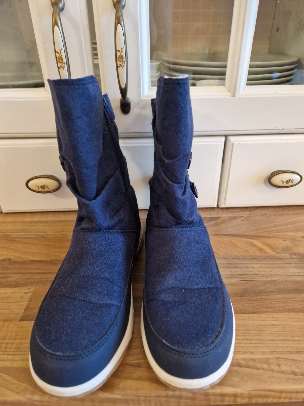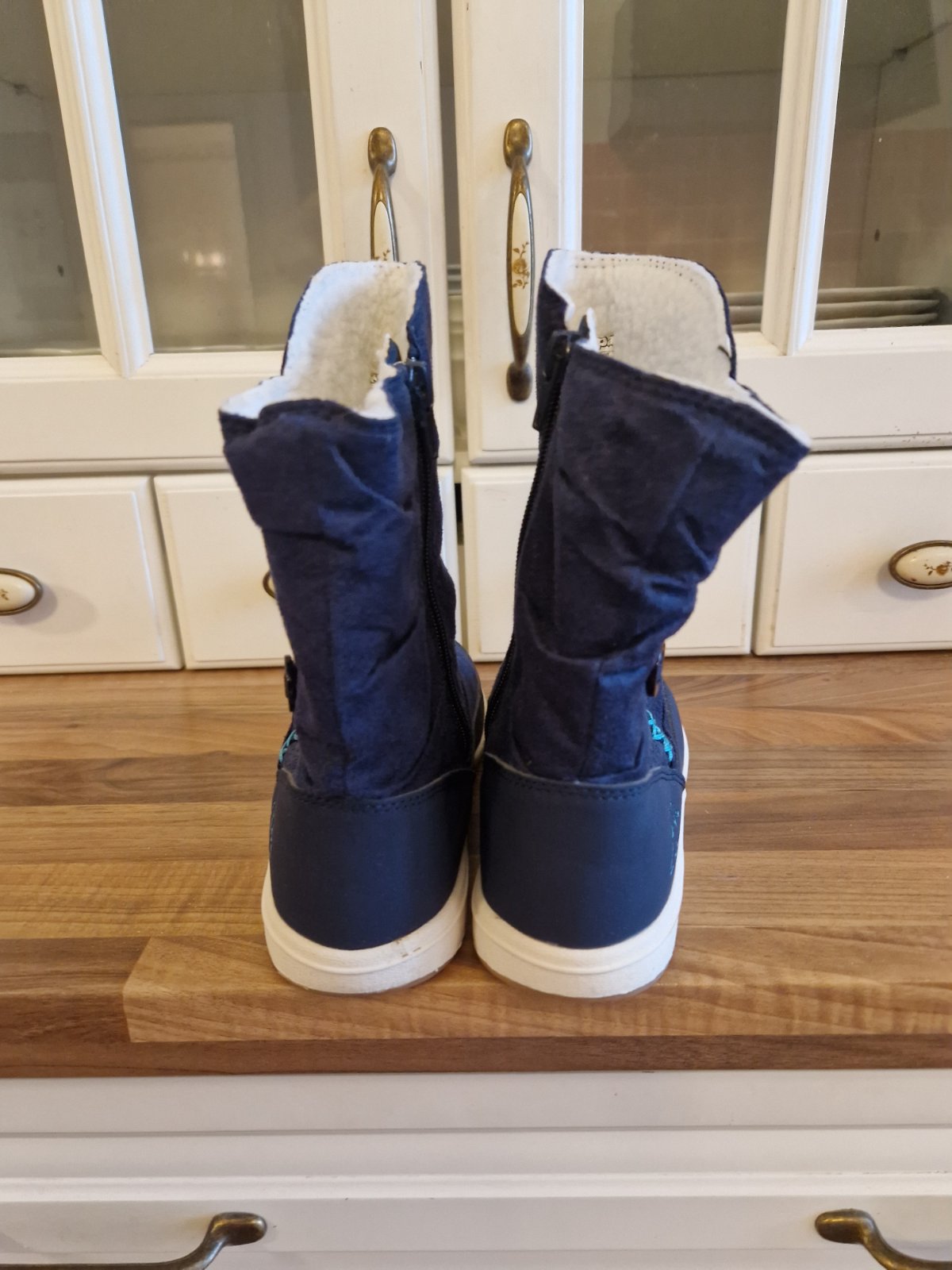 Nenosene,vyrastla nam noha,mozno sadnu uz od velkosti 34. Vyrobca uvadza dlzku chodidla 22,3cm,merana dlzka na fix swdi na 23cm.Lahucke,zips,vyteplene.Moznost vyskusat v BA.