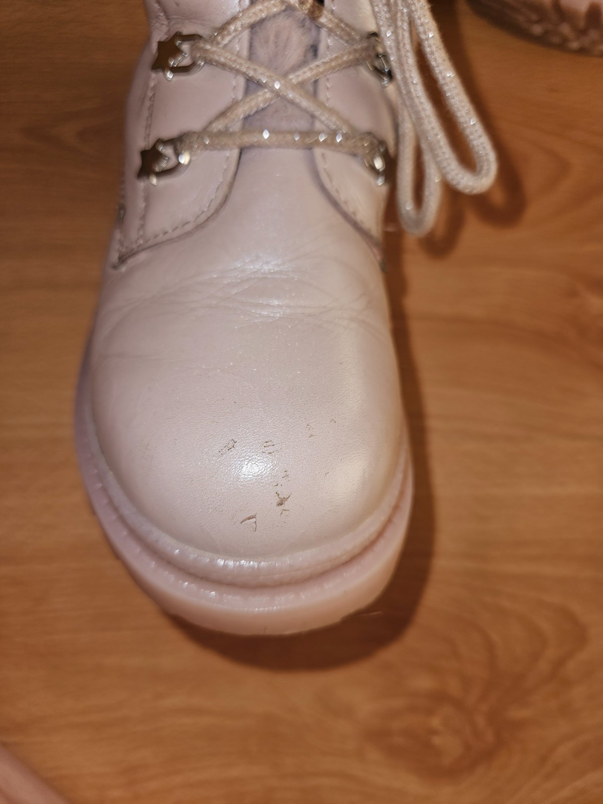 Jednu sezónu nosené celokožené zateplené topánky vo veľmi dobrom stave. Akurát práva noha na špičke zakopnutá a na päte trošku zodratá koža.