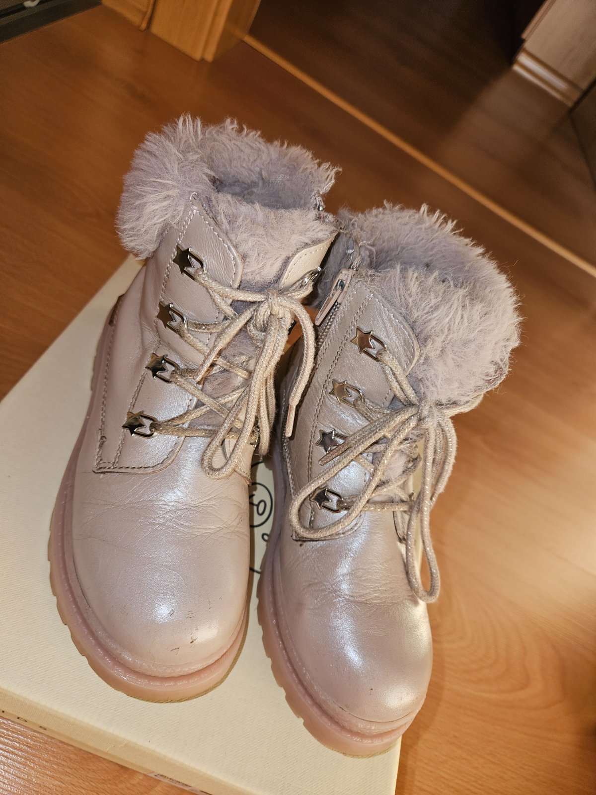 Kozusinkove kozene topánočky lasocki. Pôvodná cena 55€ moja cena 15€. bežné známky nosenia..na zips aj na šnúrky.