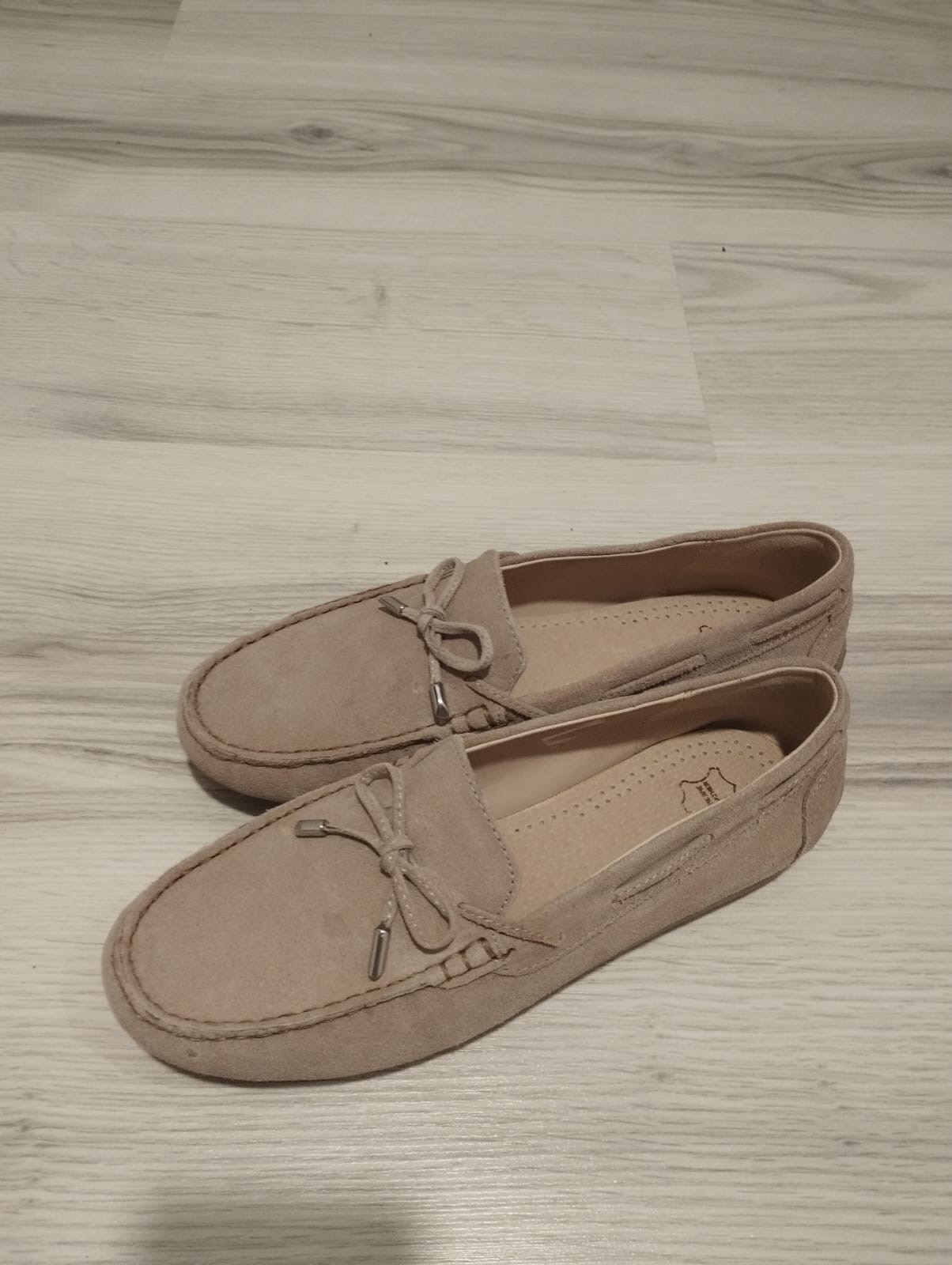Predam uplne nove/nenosene mokasiny z brusenej koze, znacka Rieker, velkost: 38.5.. ale skor pre tych co nosia velkost 38. Povodna cena bola 75 eur.