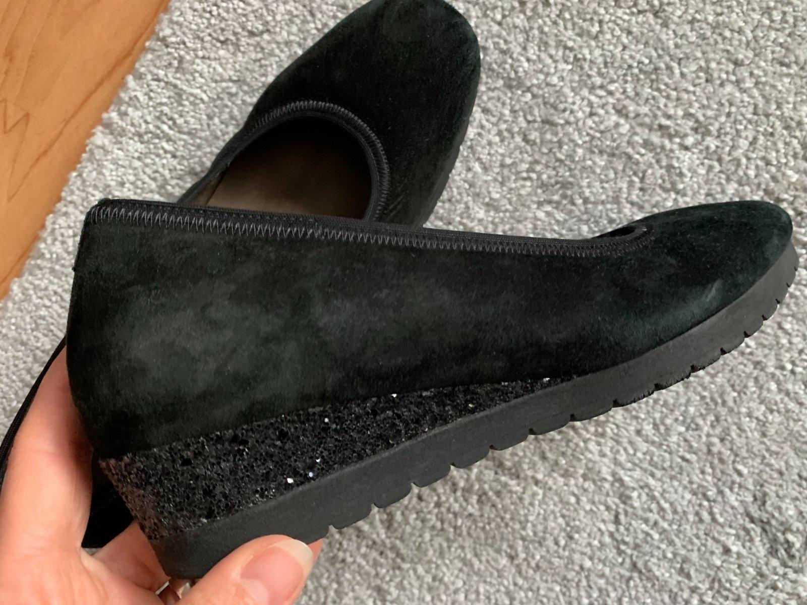 Topánky na zdobenej platforme. Veľkosť uvedená 36,5 a dĺžku som namerala 23,5cm, ale odporúčam určite na 36ky, nie väčšie. Mäkké, pohodlné.