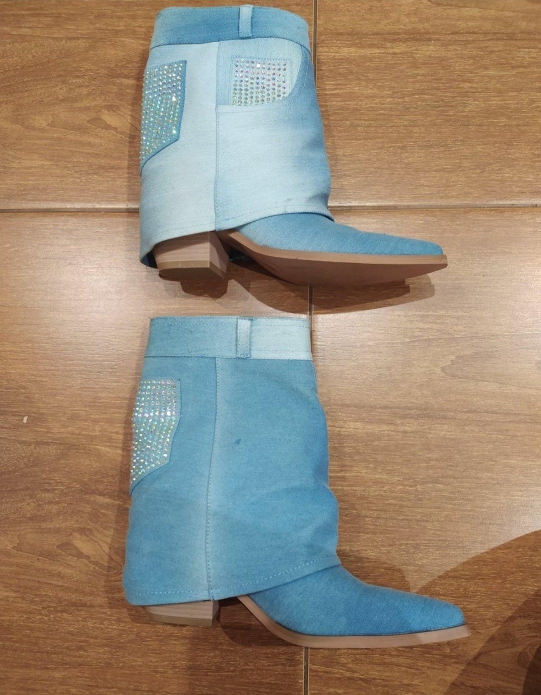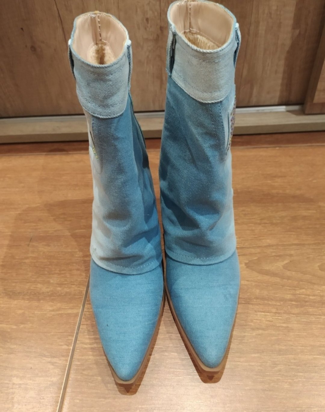pár krát obuté rifľové čižmičky