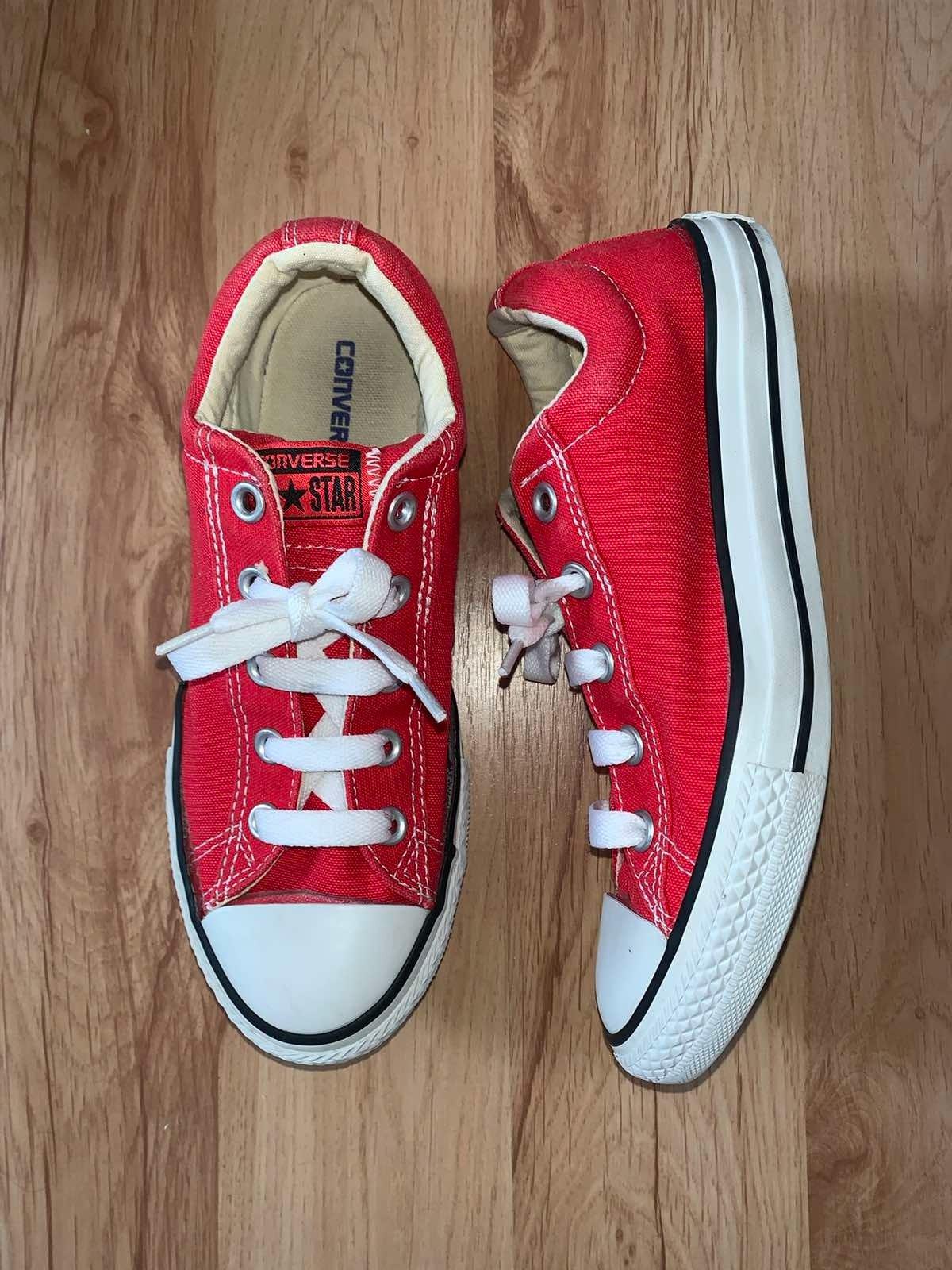 Výborný stav, krásna červená, veľkosť 36, vnútro na štítku 22 cm, reál podľa nameranej vložky 23 cm