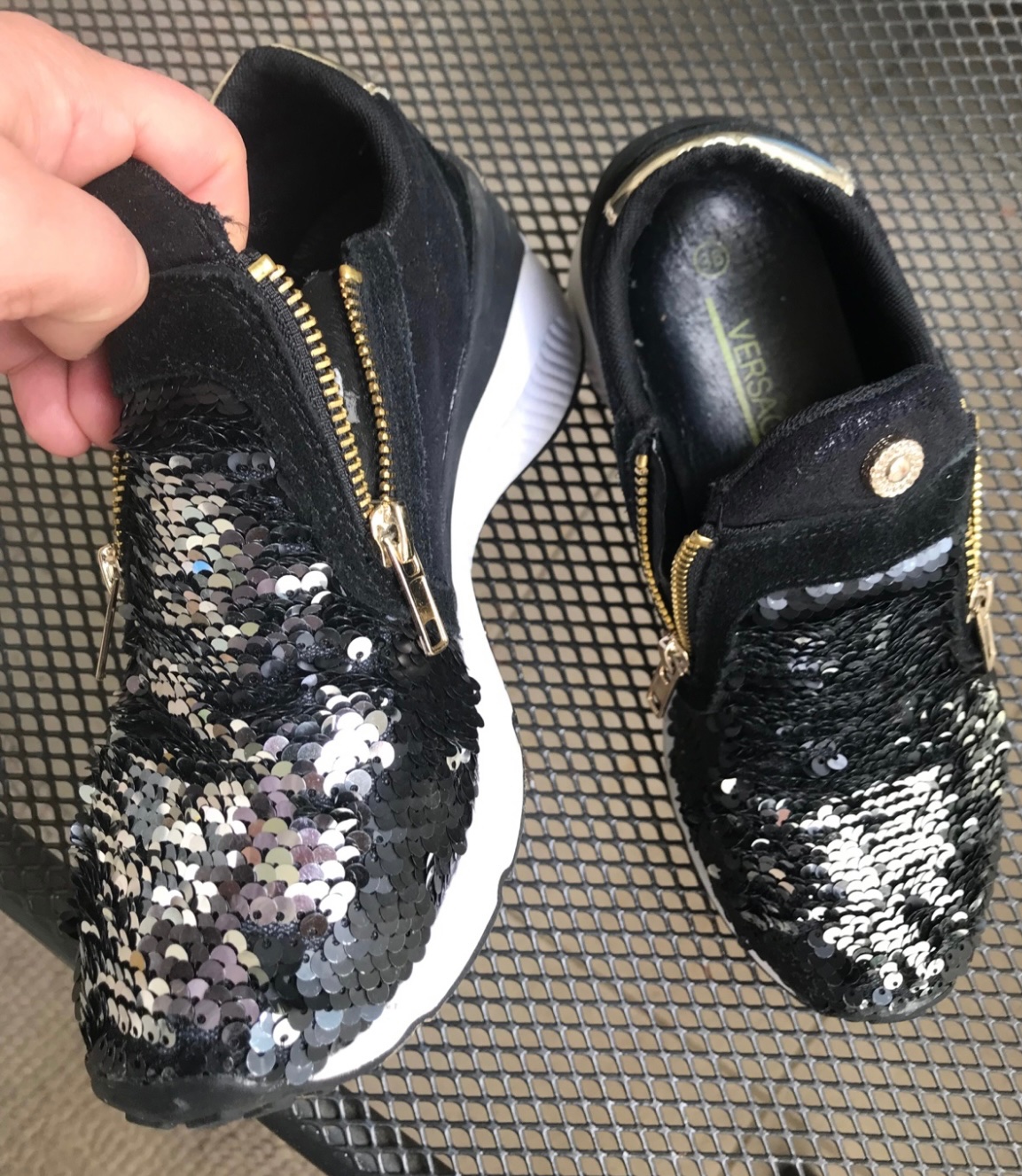 Predám flitrované tenisky č.36, bez známok nosenia, akurát treba vymeniť šnúrky. Vnútorná dĺžka je 23 cm.