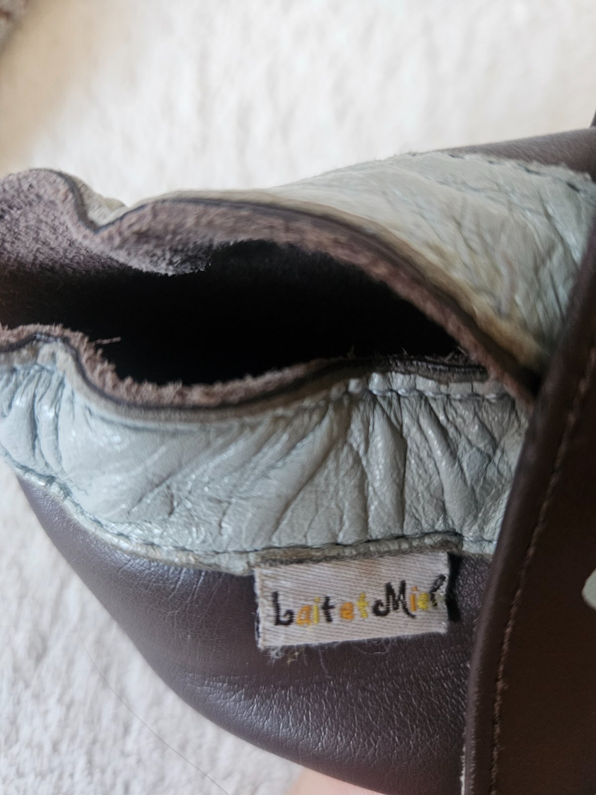 Lait et Miel sú capačky francúzskeho pôvodu. Sú vyrobené z kože v nádhernými koženými aplikáciami na zvršku capačky. Podrážka je jednovrstová a je tak isto z kože. Sú určené na normálne až širšie nôžky, na normálny až vyšší priehlavok. Výborne sadnú bucľatým nôžkam. Odporúčame na prvé kroky.