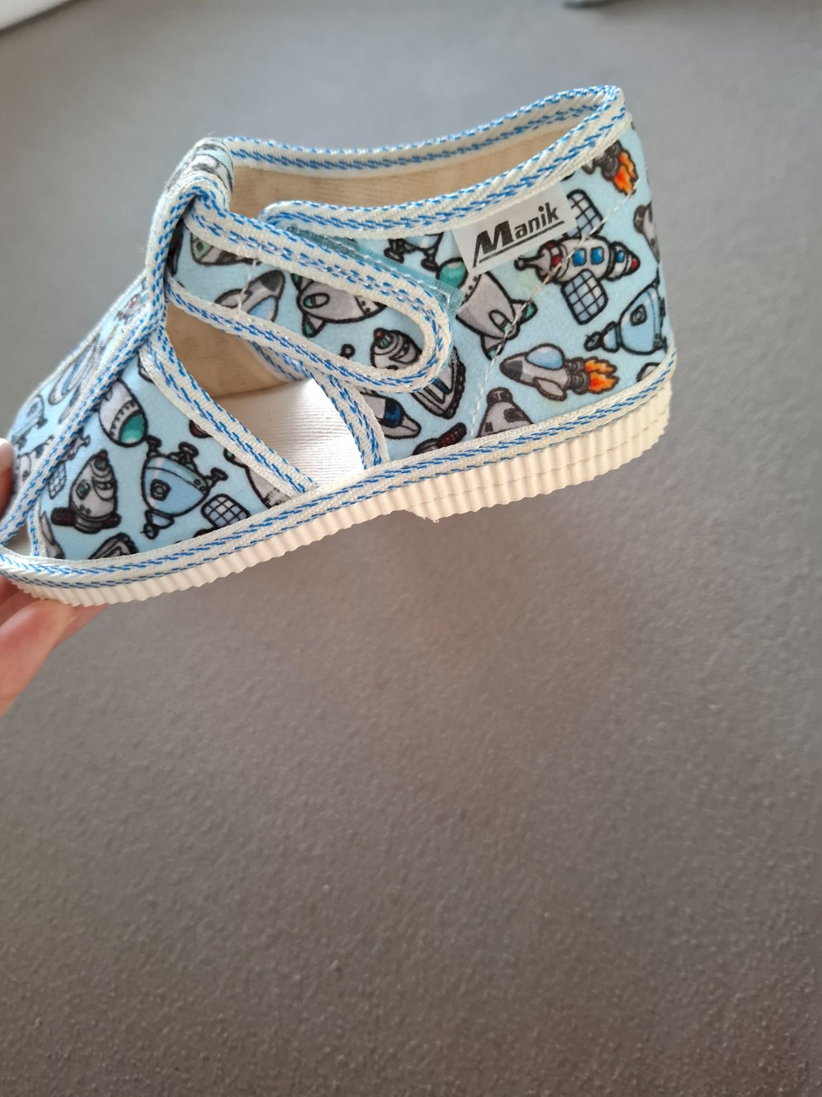 Veľkostná tabuľka - viď foto Tvar špičky s dôrazom na typicky detský dominantný palček zabezpečuje dostatočný priestor pre prsty. Elastická stielka zvyšujúca komfort pri chôdzi je z kombinácie „pam...