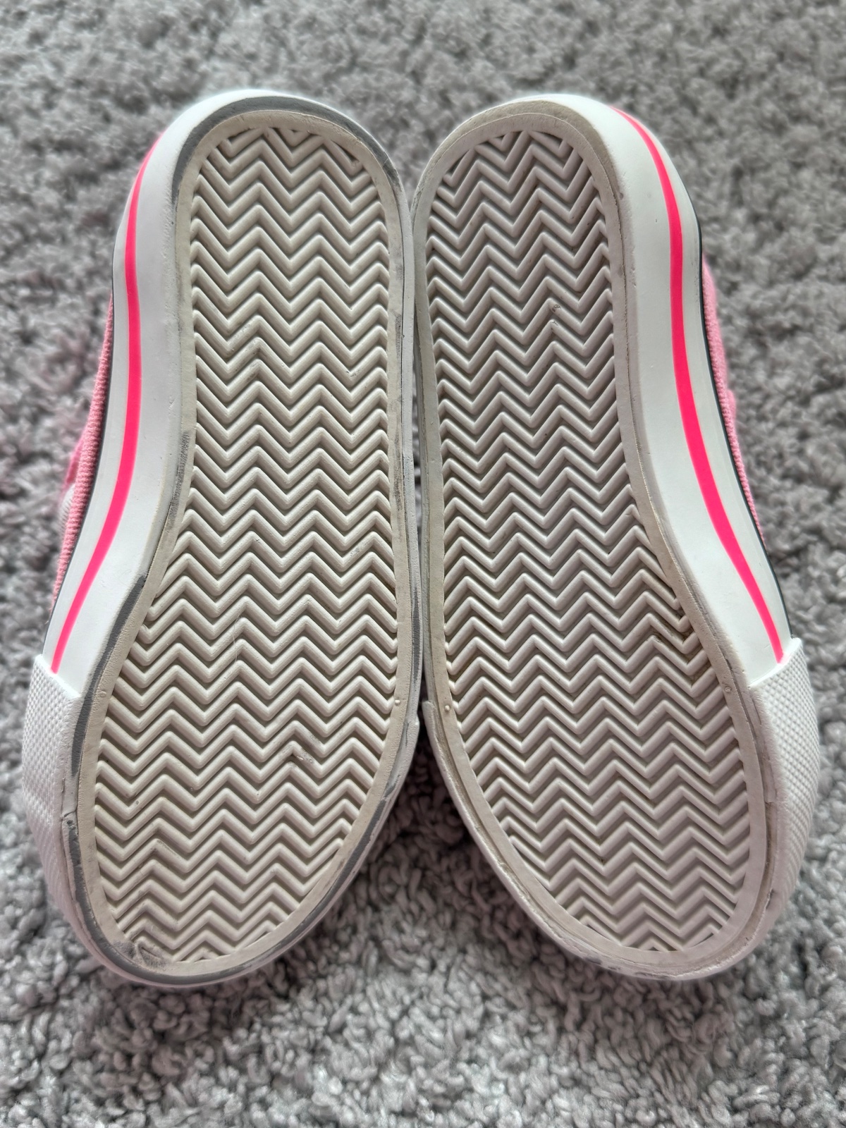 Neónová rižová, strašne pekná farba, sú moderné. Vo veľmi dobrom stave, až na fliačik od fixky (je to bledé, nie je to moc vidieť) na boku a na druhej mini bodky, tie pôjdu vyprať.. Okrem toho výborný stav. Vd 15cm