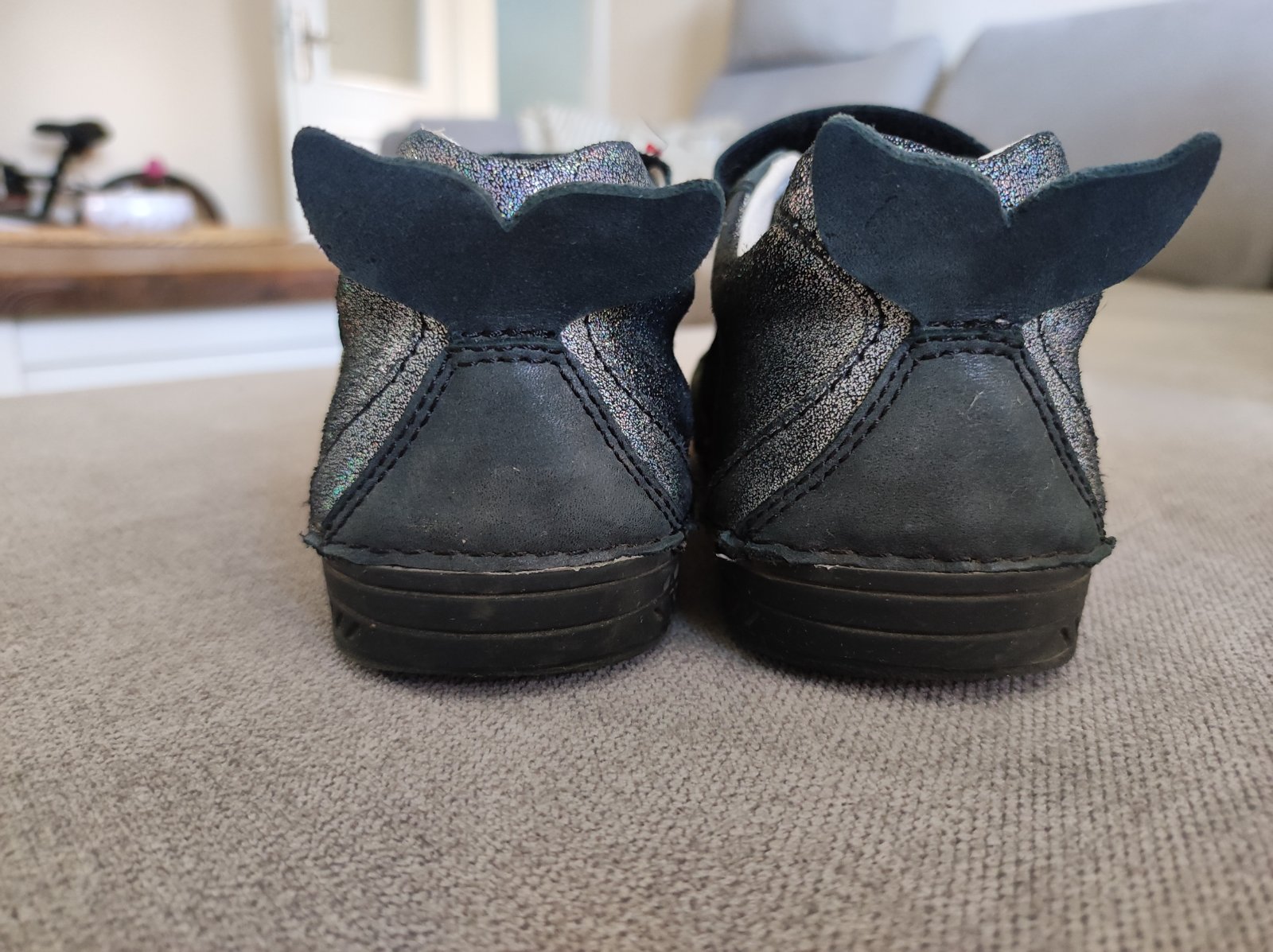 Barefoot jesenné topánky z lesklej hladkej kože s jemným trblietaním. Jazyk je z brúsenej kože. Mäkké, ohybné s protišmykovou podrážkou. Veľkosť 25 - 30 cena 48,90 € Veľkosť 31 - 36 cena 51,90 € ...
