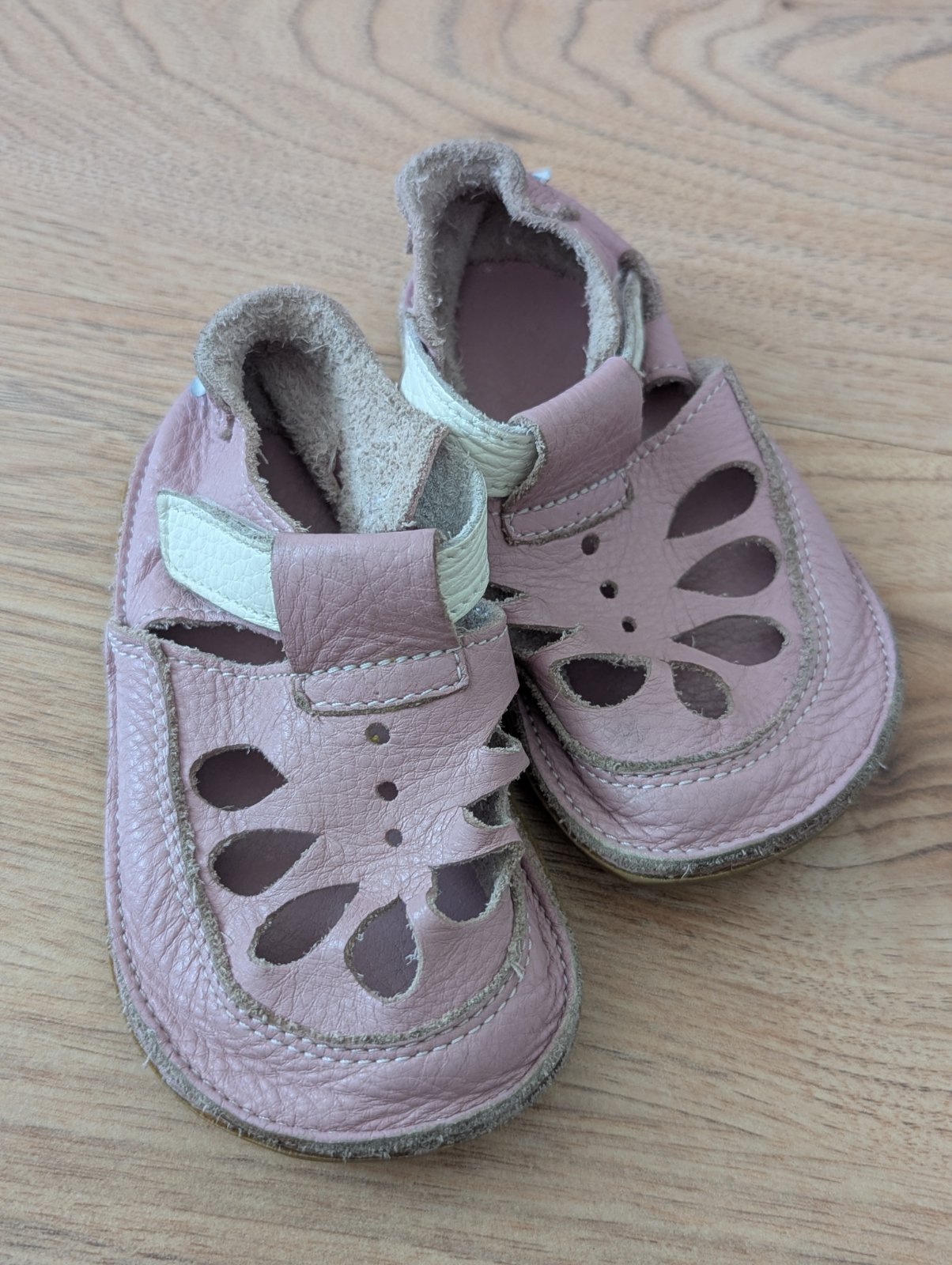 Kožené barefoot sandále s textilnou podrážkou. Vnútorné rozmery: 22: 14,5 x 6,5 cm 23: 15,2 x 6,6 cm
