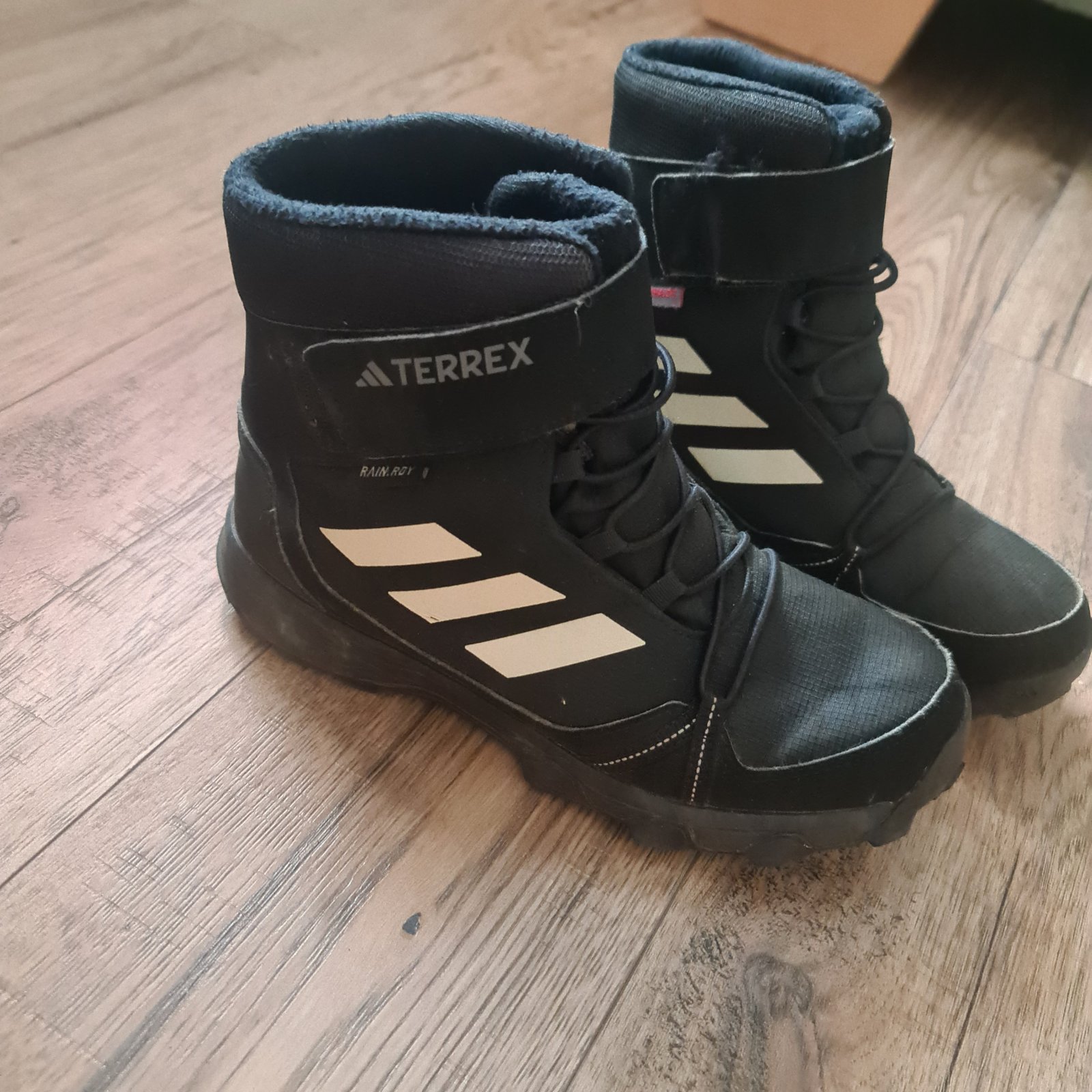 Chlapcenske zimne Terrex topánky, bežné známky nosenia, sú teplé. Nosil ich na striedačku. Vnútorná dĺžka cca.24 - 24.5cm