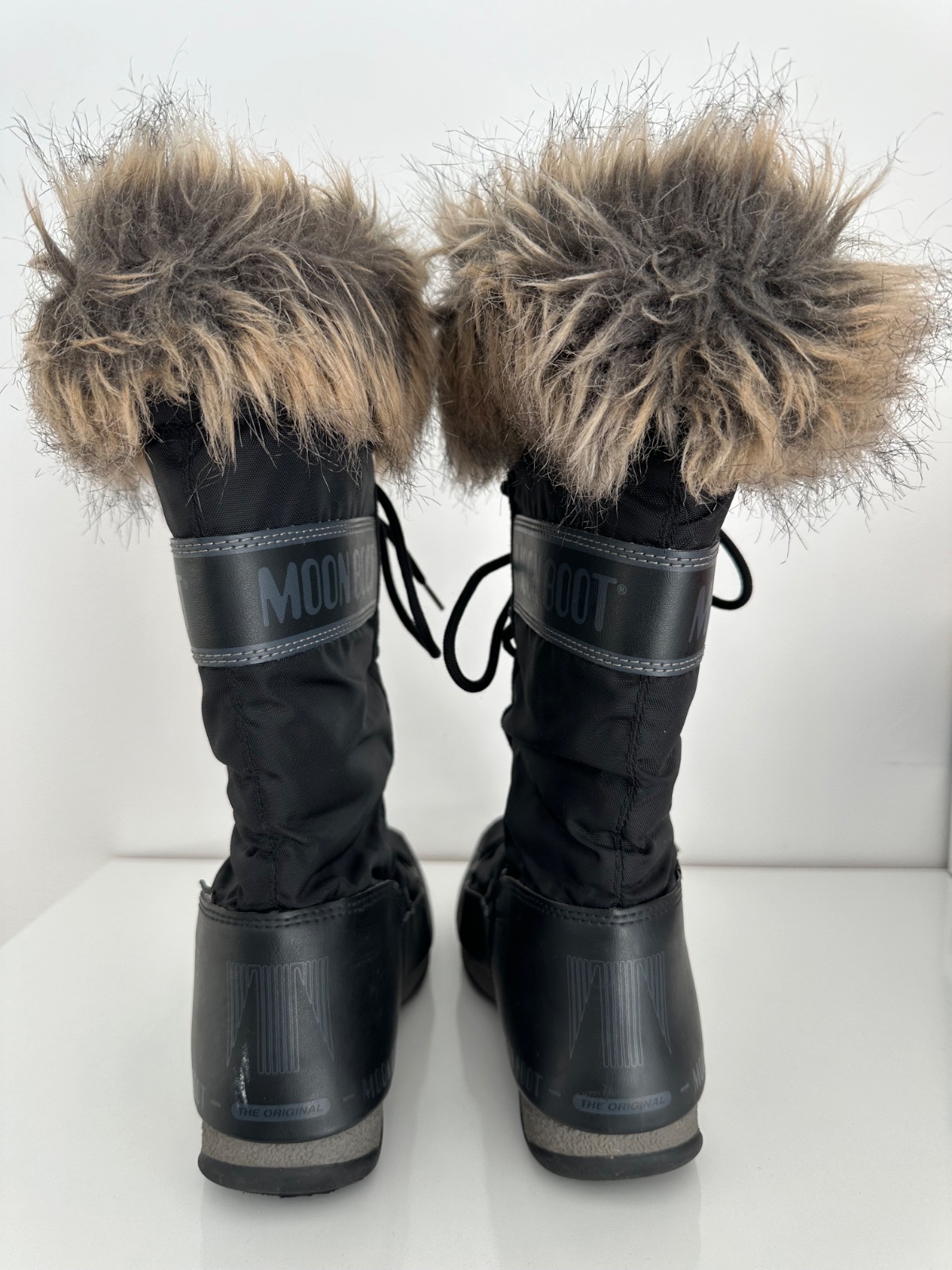 Dámska obuv značky Moon Boot. Užite si zimu s nohami v teple na svahu aj v meste a obujte si tieto čierne čižmy MOON BOOT MONACO WP 2. Polstrovaný nylonový materiál a vodeodolná membrána sa postarajú o kvalitu a vodeodolnosť. Dámske snehule s umelou kožušinkou sú štýlovým kúskom, v ktorom zažiarite na svahu, na prechádzke v meste alebo v prírode. Hodia sa na bežné nosenie aj na obutie po lyžovačke. Zima je pre ženy s čižmami Moon Boot Monaco WP 2 módnou záležitosťou. Dámske čižmy sú štýlové a neprehliadnuteľné. Nechajte sa rozmaznávať a priťahovať jemnosťou eko kožušiny. Značkové dámske čižmy sú pohodlné a zanechajú vaše nohy v teple aj pri tých najväčších mrazoch. Sú určené pre skutočné záujemkyne o štýl. Na horách alebo v meste, ráno alebo večer, v práci alebo na dovolenke sú dámske zimné topánky Moon Boot MONACO WP 2 módnou odpoveďou na zimu a chlad.