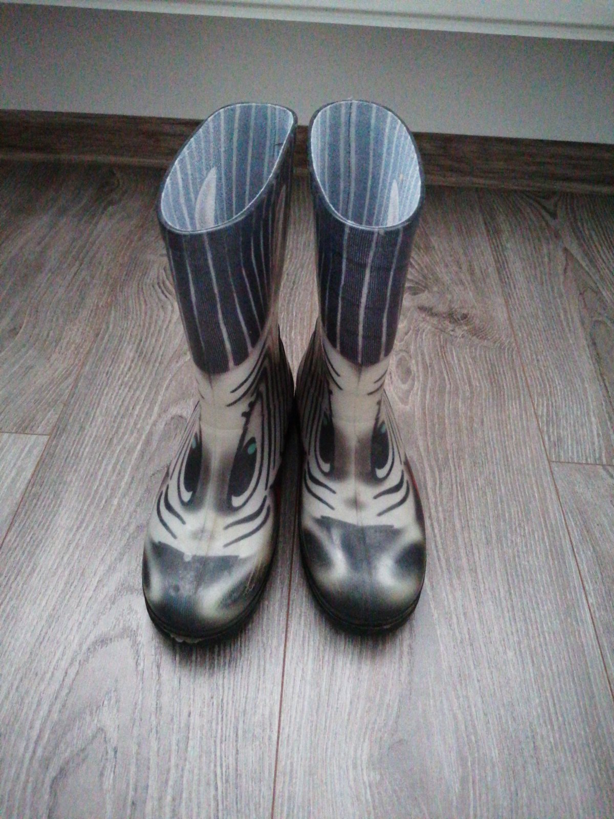Predám používané gumáky/snehule vo veľkosti 32/33. Nepremokaju, ale vnútorná hrejiva vložka je už na päte a boku miestami zodrata. Cena prispôsobená stavu.