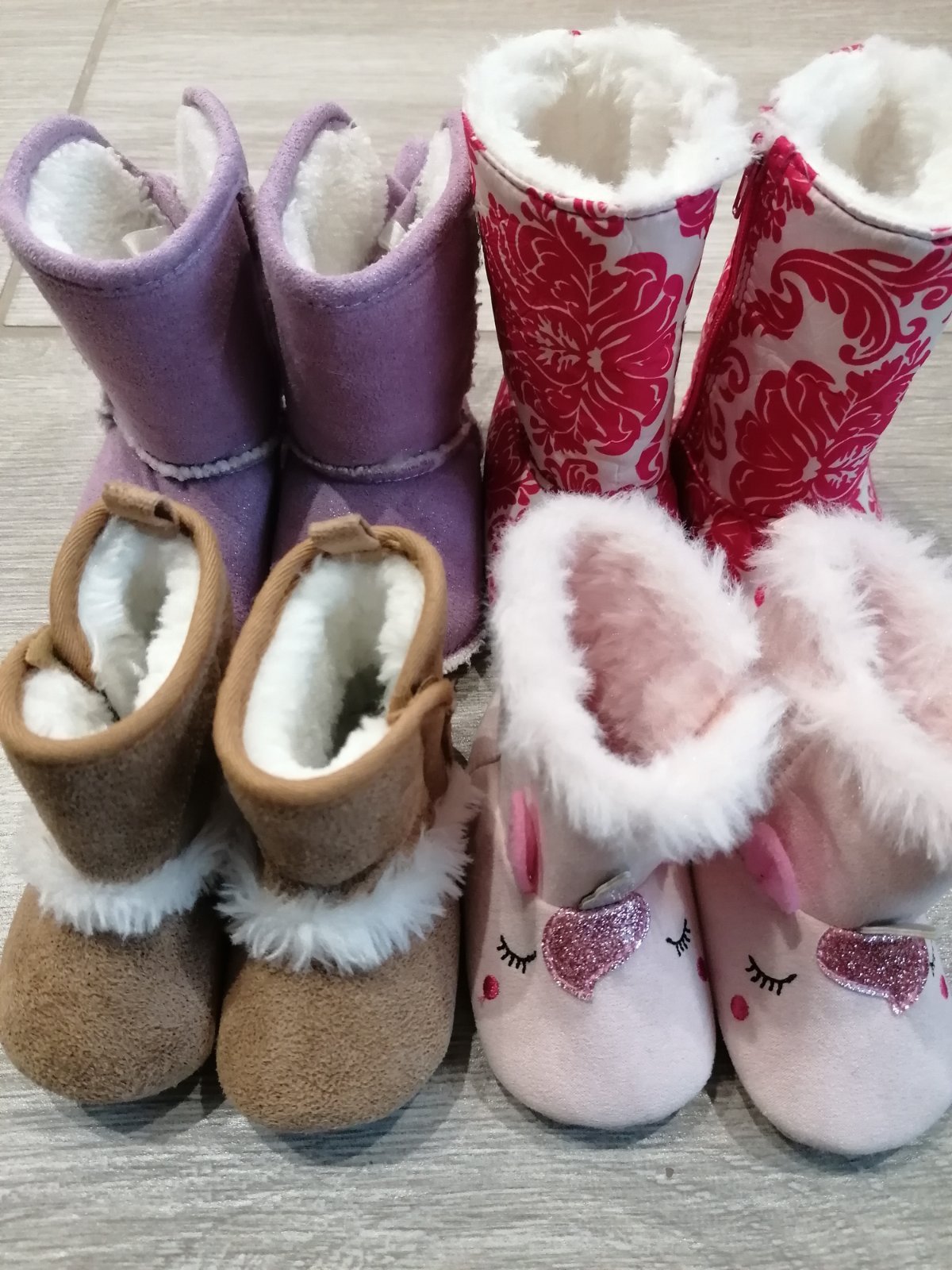 Ponúkam nádherné zimné čižmičky pre malu slečnu. Nosené na striedačku s ďalšími počas chladného obdobia. Obe veľkosť 0 - 3 mesiace, treba sa však riadiť rozmerom