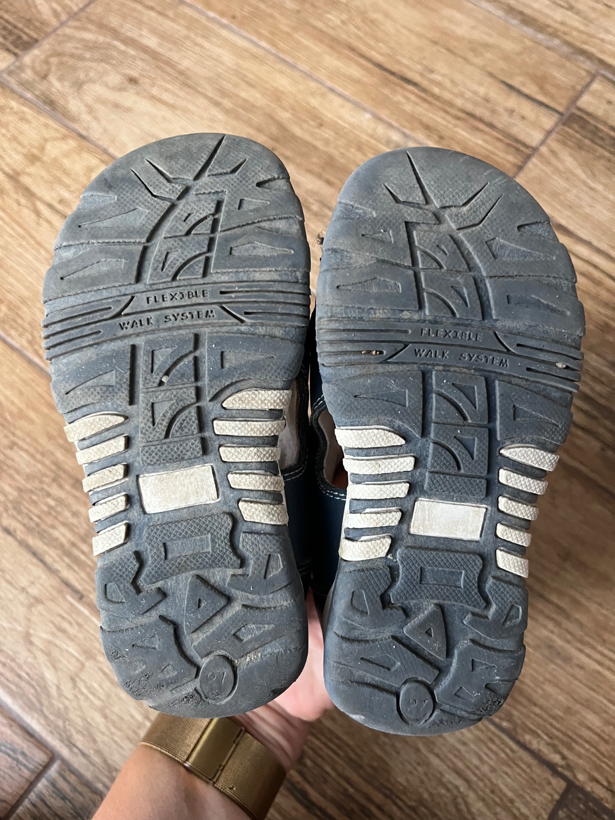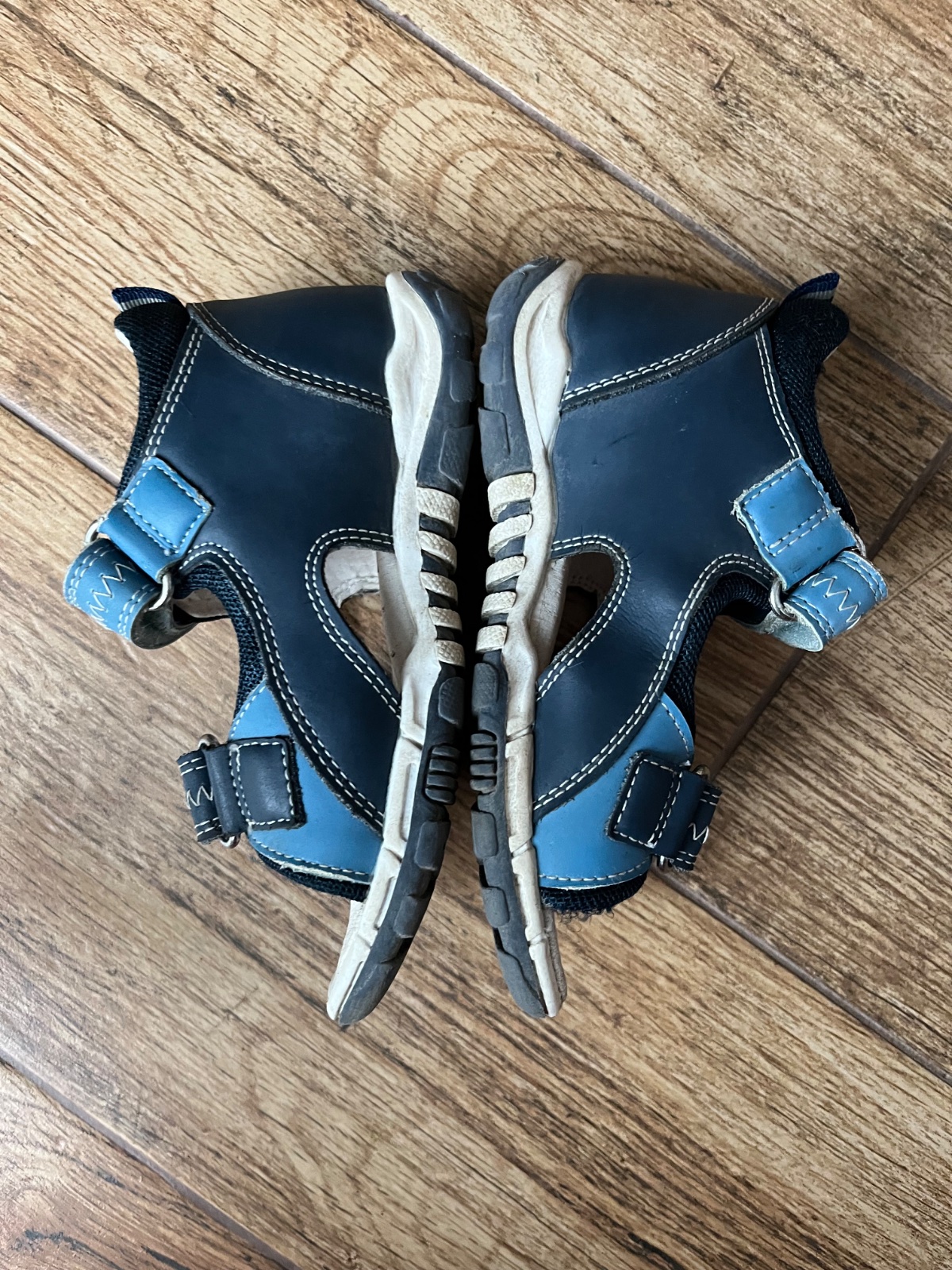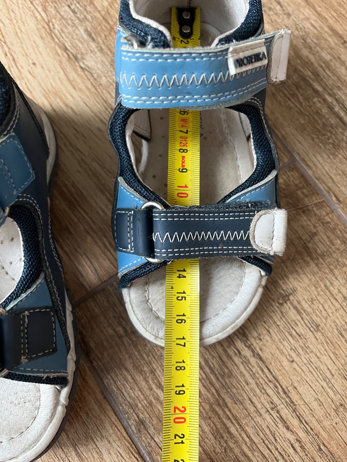 Sandálky nosené, farba čistením vyblednutá. Vnútorná dlzka 17cm. Na dvor určite ešte poslúžia.
