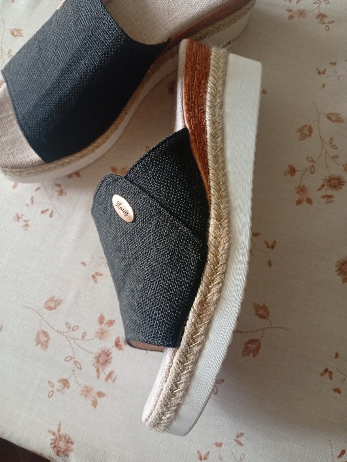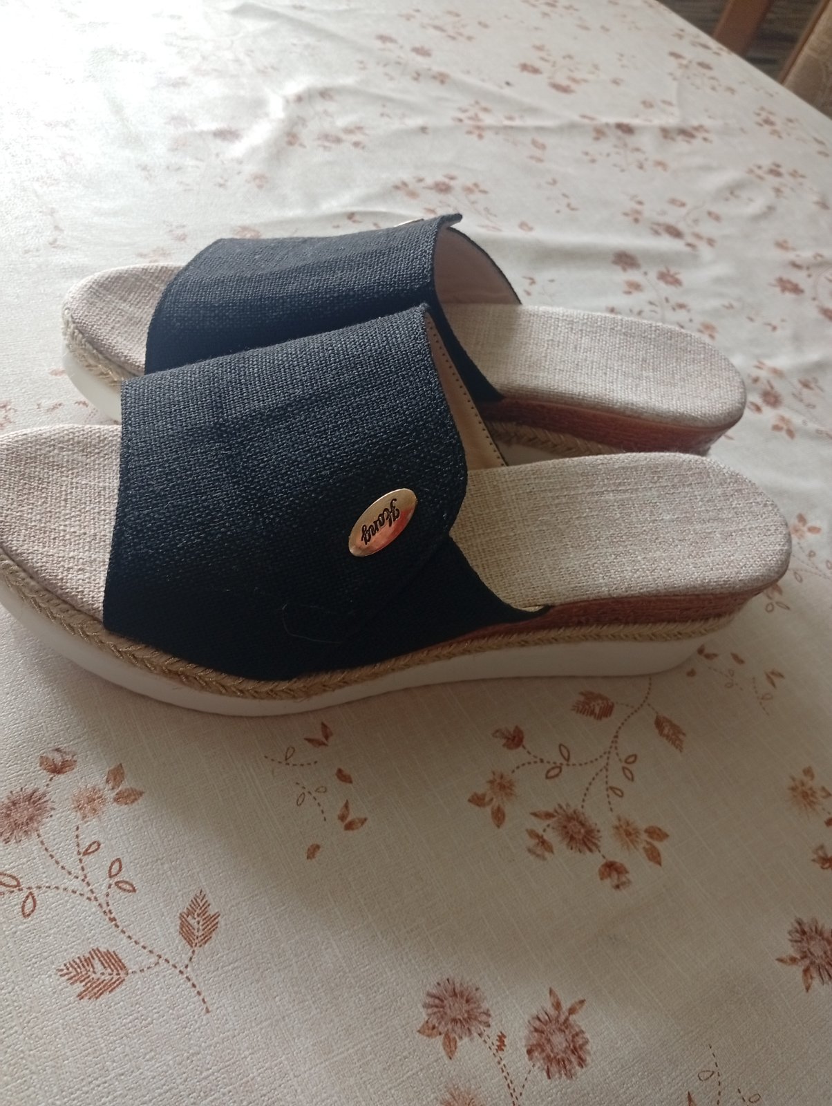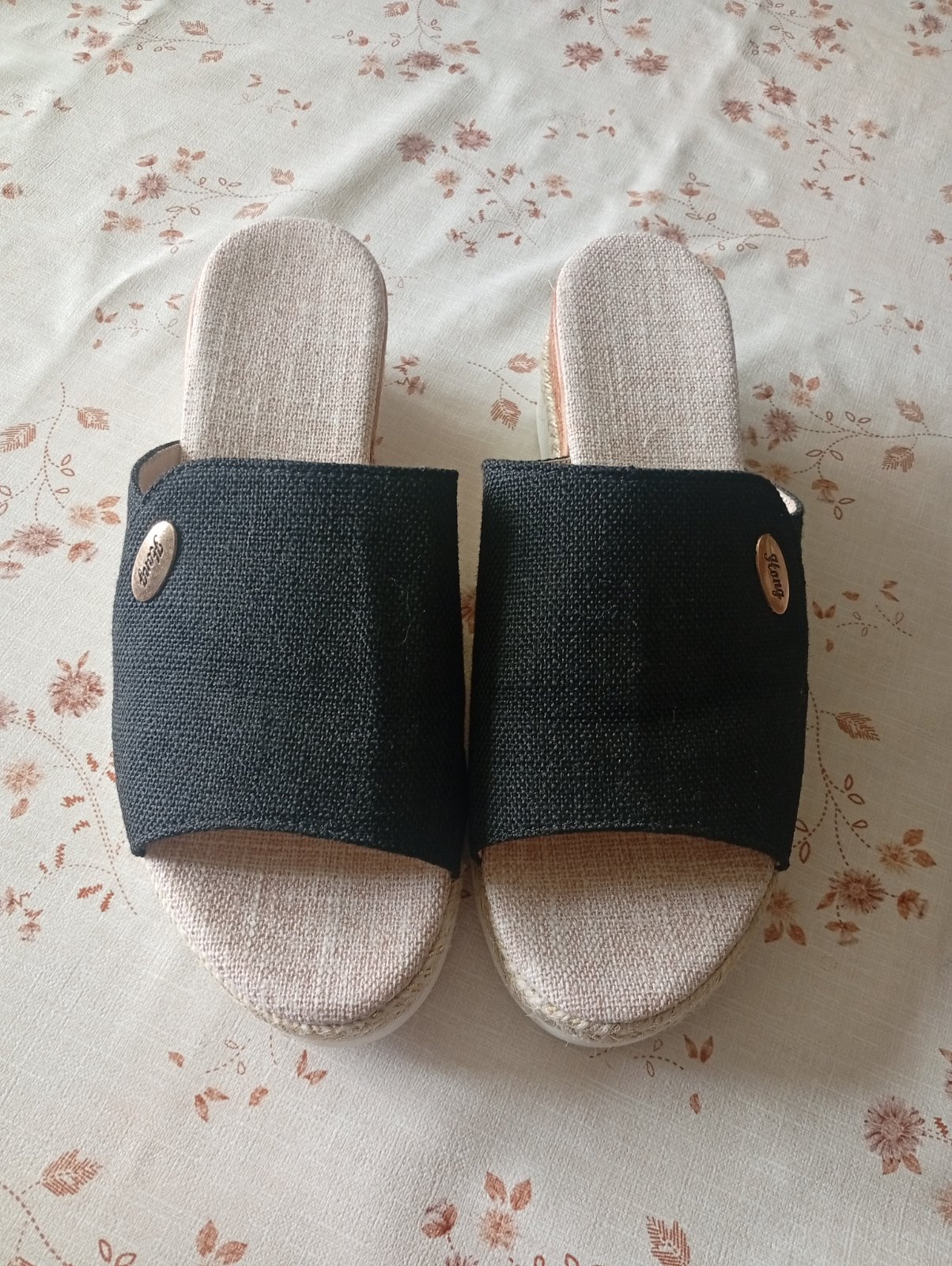 Dámske šľapky platene nenosené s podpätkom ja mám hrubsiu nohu tak mam problém obuť
