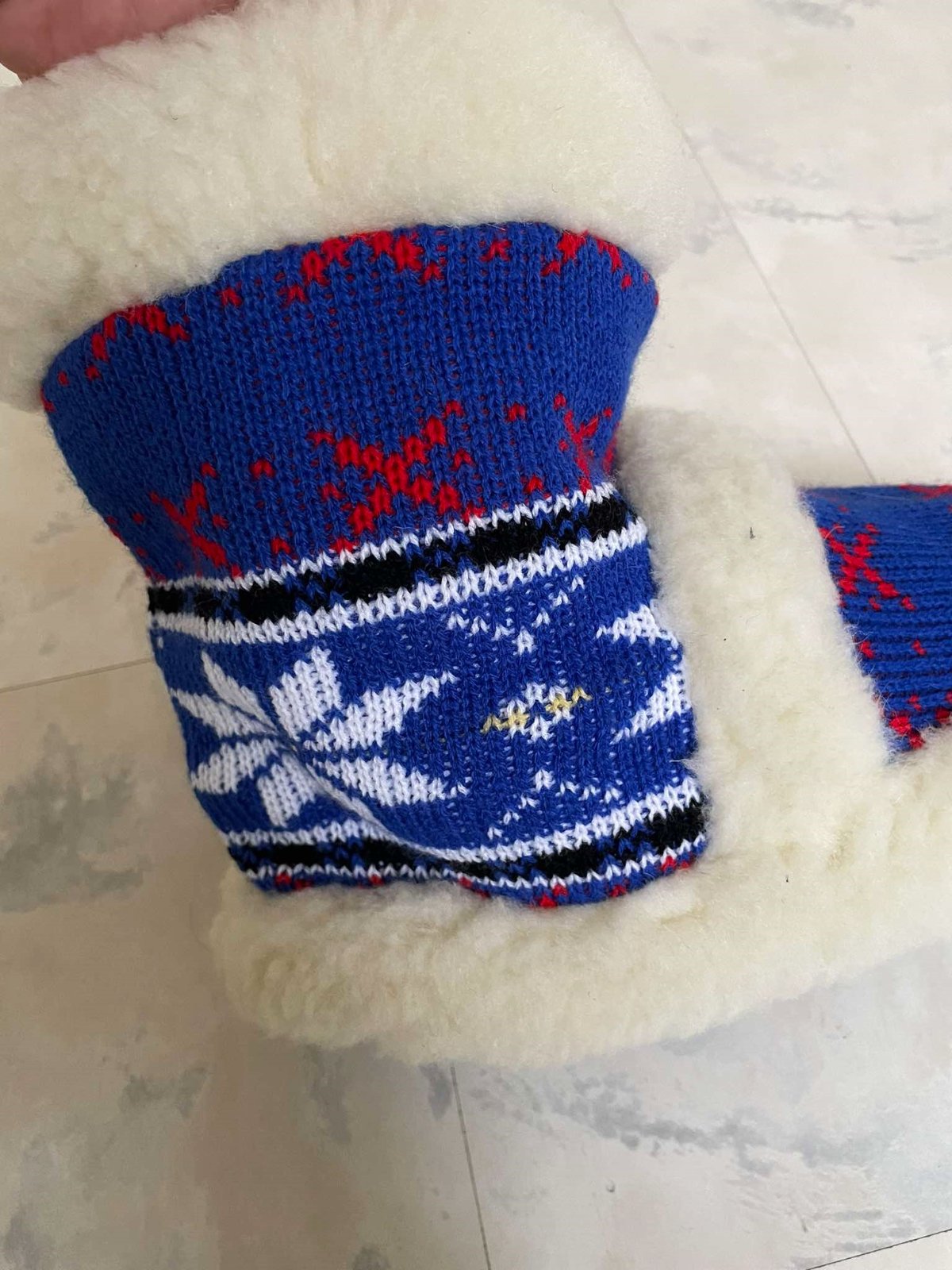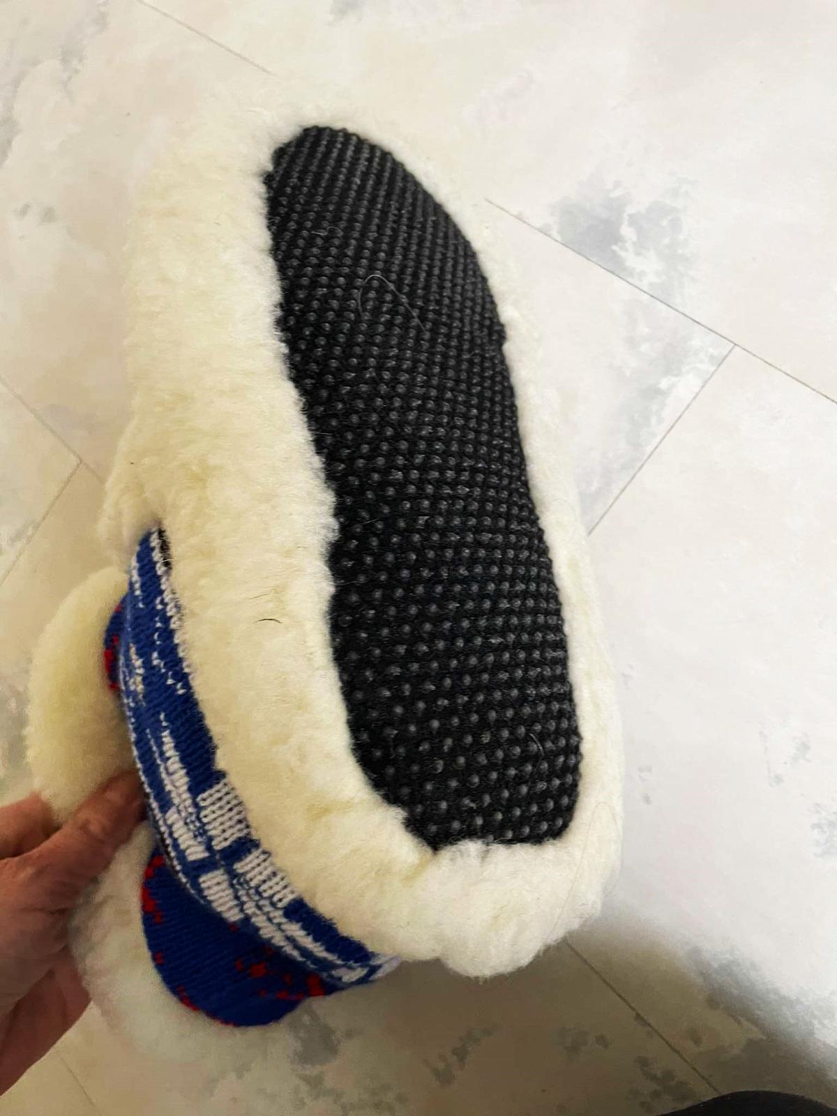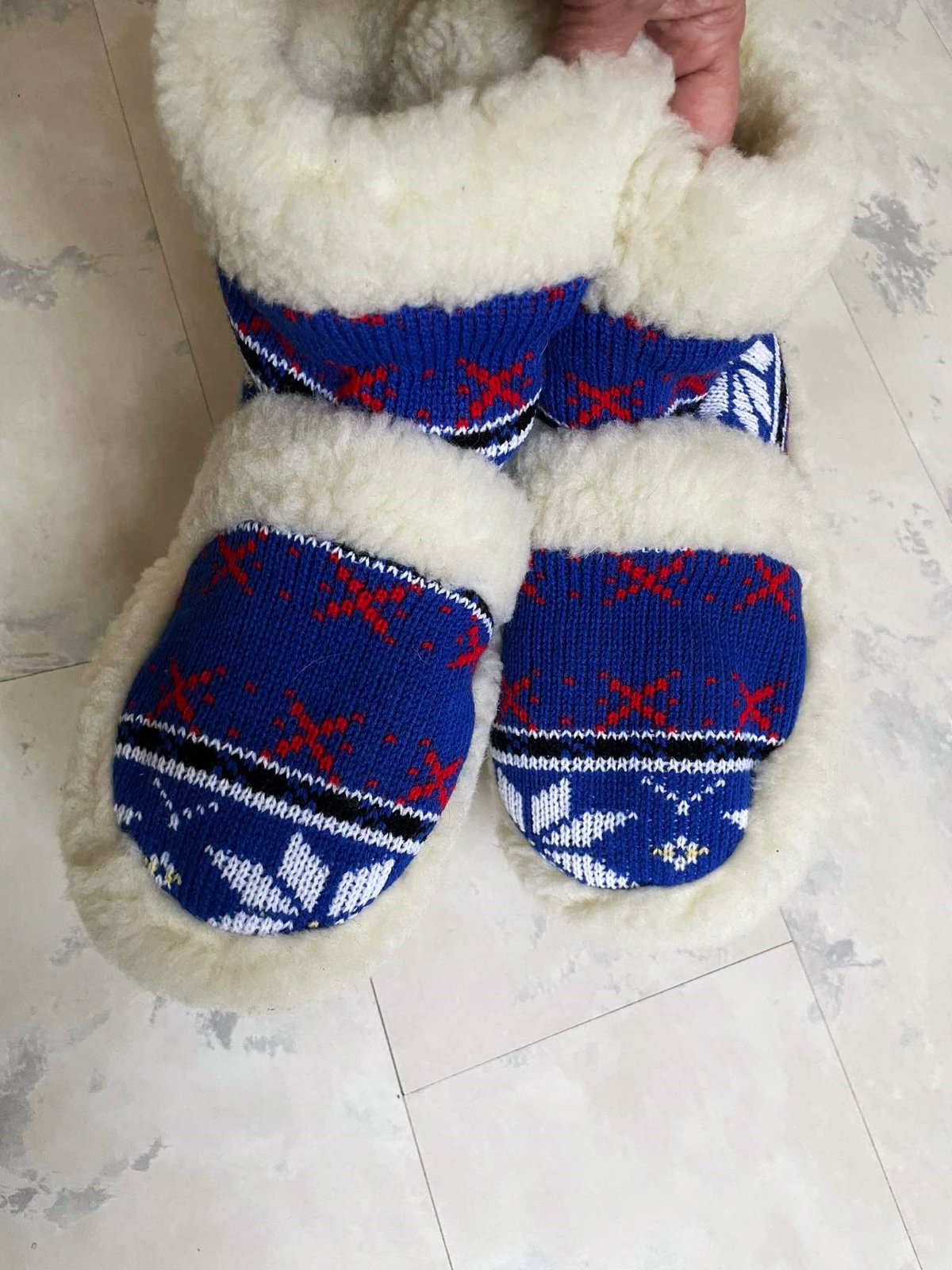 Kvalitné 1 x obuté ( ako nové ) vysoké teplé papuče,ľahké a taktiež ľahko sa obúvajú,na povrchu pletenina ,odfotené i podrážky,ktoré sú dobre umývateľné a protišmykové.Papuče vyrobené zo 100% ovčej vlny MERINO, ovčie rúno má termoregulačné vlastnosti. Umožňujú pokožke voľne dýchať, vytvárajú príjemný pocit tepla a dokonalú izoláciu. Zmierňujú napätie a bolesti nôh. Sú vhodné pre reumatikov a ľudí, ktorí trpia tzv. pocitom studených nôh. Ale hlavne sú mäkučké, teplučké a komfortné na nosenie, suché teplo....vhodné aj na darček...