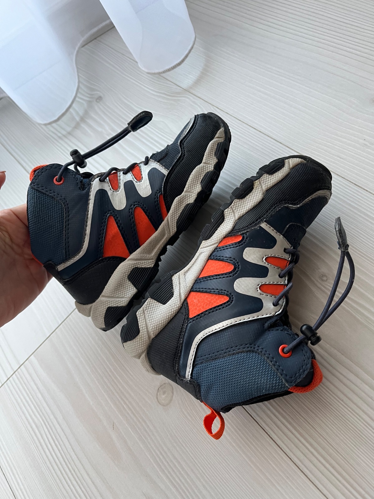 Bežné známky nosenia,len z vnútornej strany trochu šuchnuté.Malá ich nosila pri chladnej jeseni a teplej zime.Dížka vložky 18 cm.