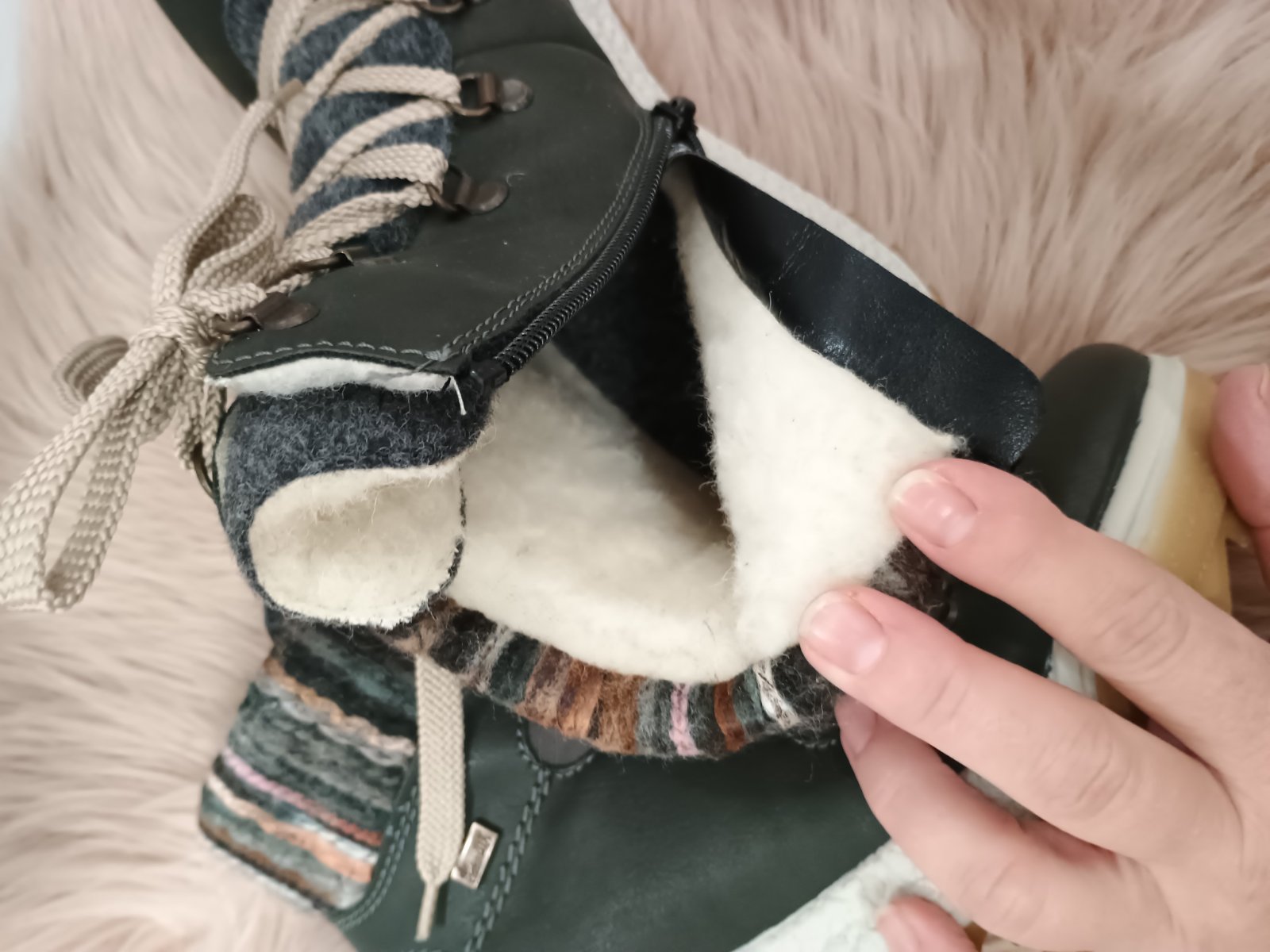 Dámske zateplené členkové topanky na vyššej podrážke od značky Rieker, ktoré si obľúbite už na prvý pohľad či obutie. Majú štýlový zelený zvršok, plstený jazyk a vrchný lem. Ľahko sa obúvajú, pretože majú na boku zips a na priehlavku šnurovanie. Vo vnútri sú zateplené jahňacou vlnou. Majú mäkkú stielku a sú nepremokavé. Podošva je vysoká a s dezénom. Malé logo značky nájdete na boku topánky. Topánky sú ideálne pre ženy, ktoré majú rady športový štýl a milujú pohodlnosť.