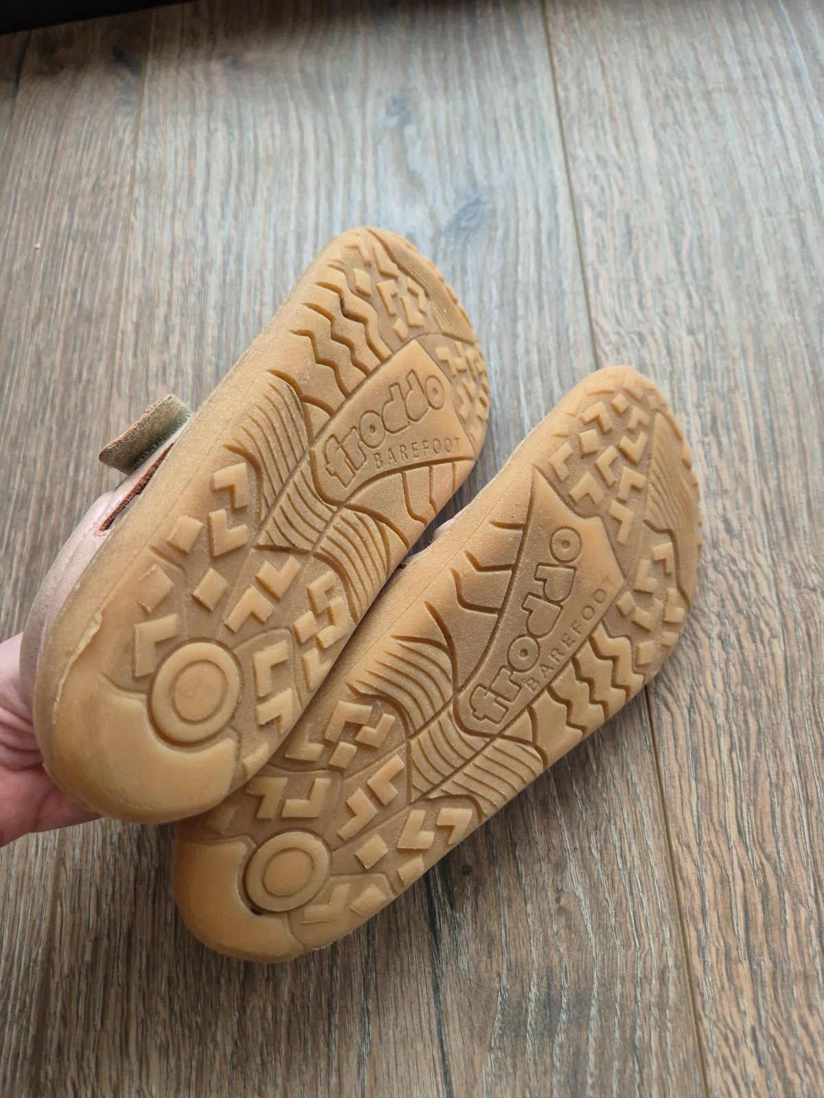 Froddo barefoot kožené tenisky nosené na striedačku s inými mojou dcérkou. Sú vo veľmi dobrom stave. Štepovanie na pravej topánke mierne šuchnuté. Sú vyrajbané, vydezinfikované sprejom na obuv, oše...