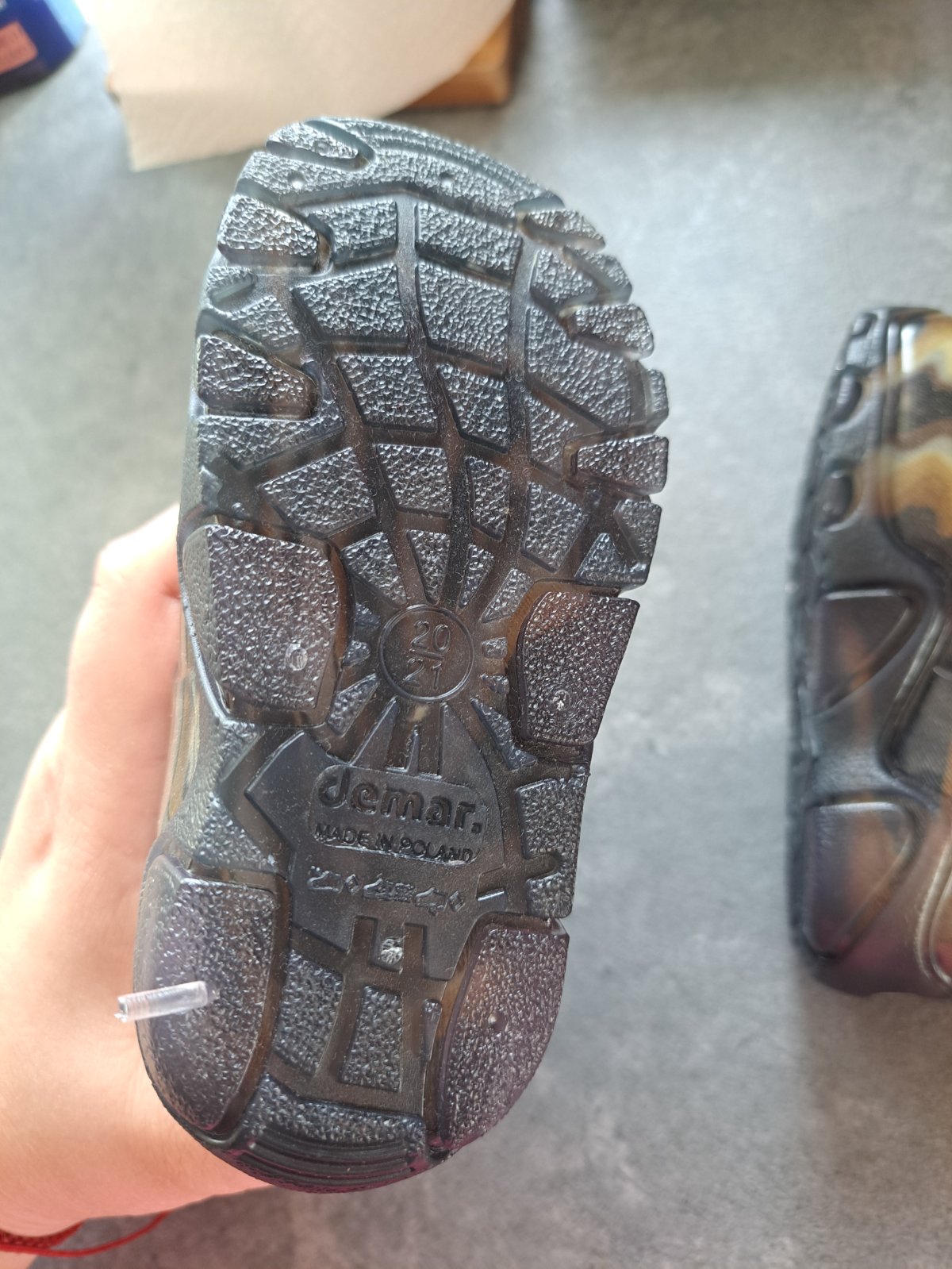 Predám gumáky od protetiky veľkosť 20. Asi dva krát obuté, čiže skoro nové. Nie sú zateplené takže skôr na jar, leto a teplú jeseň. Cena 10 euro aj s poštovným. Vnútorná dĺžka je 13,5 cm.