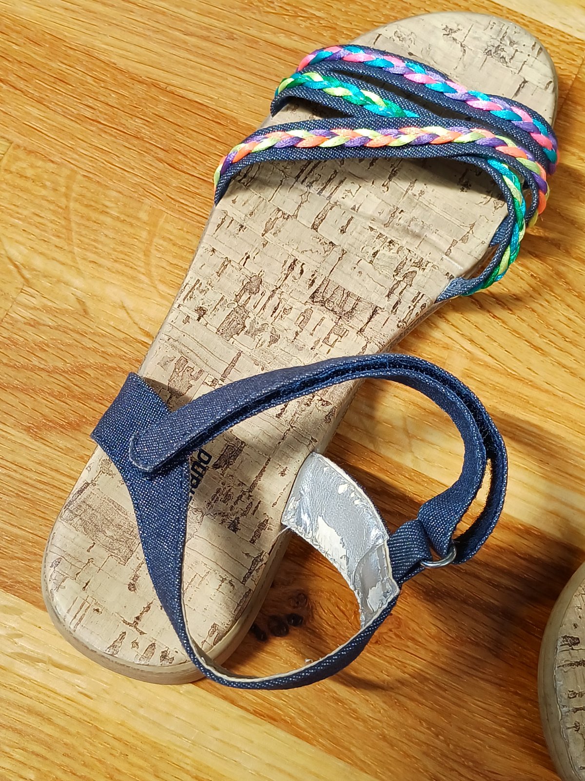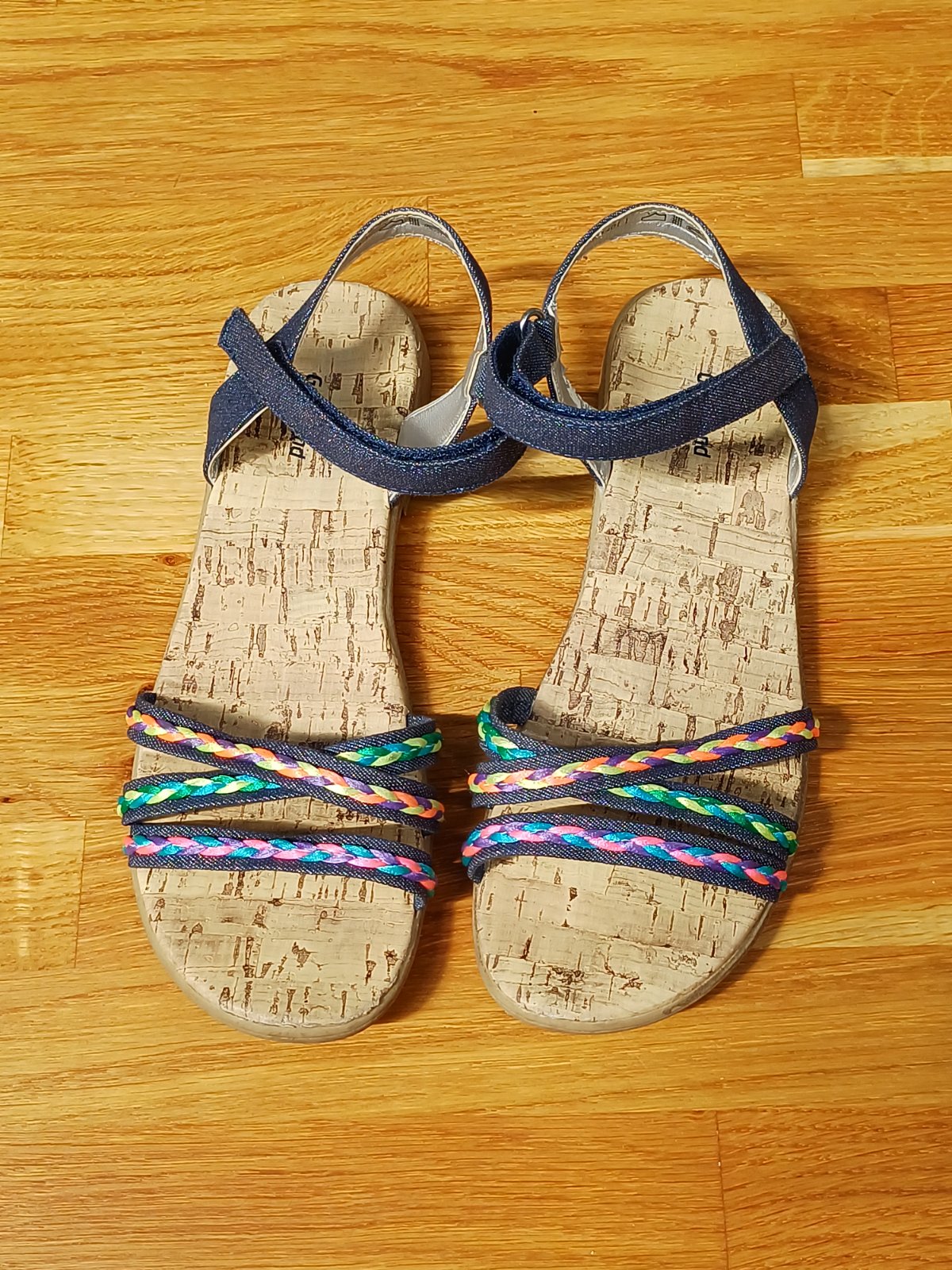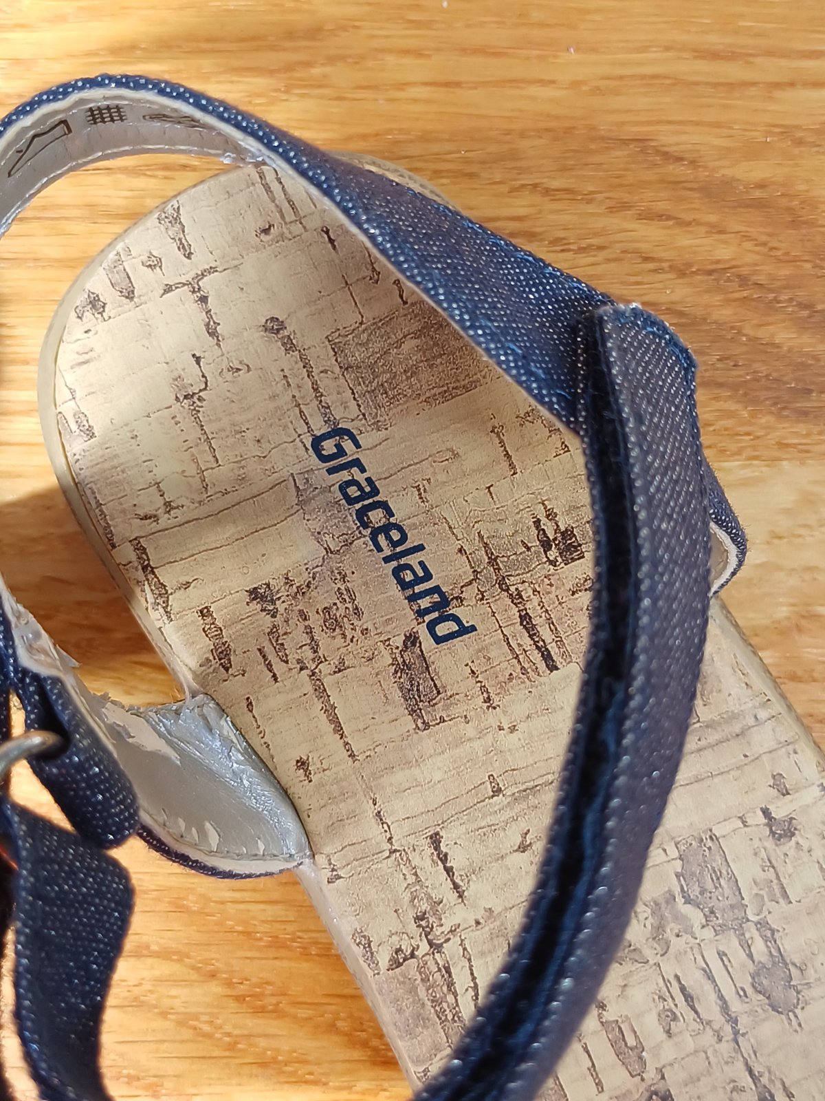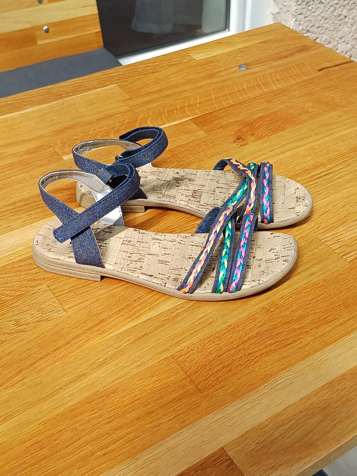 Vzhľad rifľoviny, nosené príležitostne, dobrý stav, olupovanie zvnútra na remienkoch (viď foto), zapínanie na suché zipsy - stále pevne držiace, vnútorná dĺžka 23,5 cm.