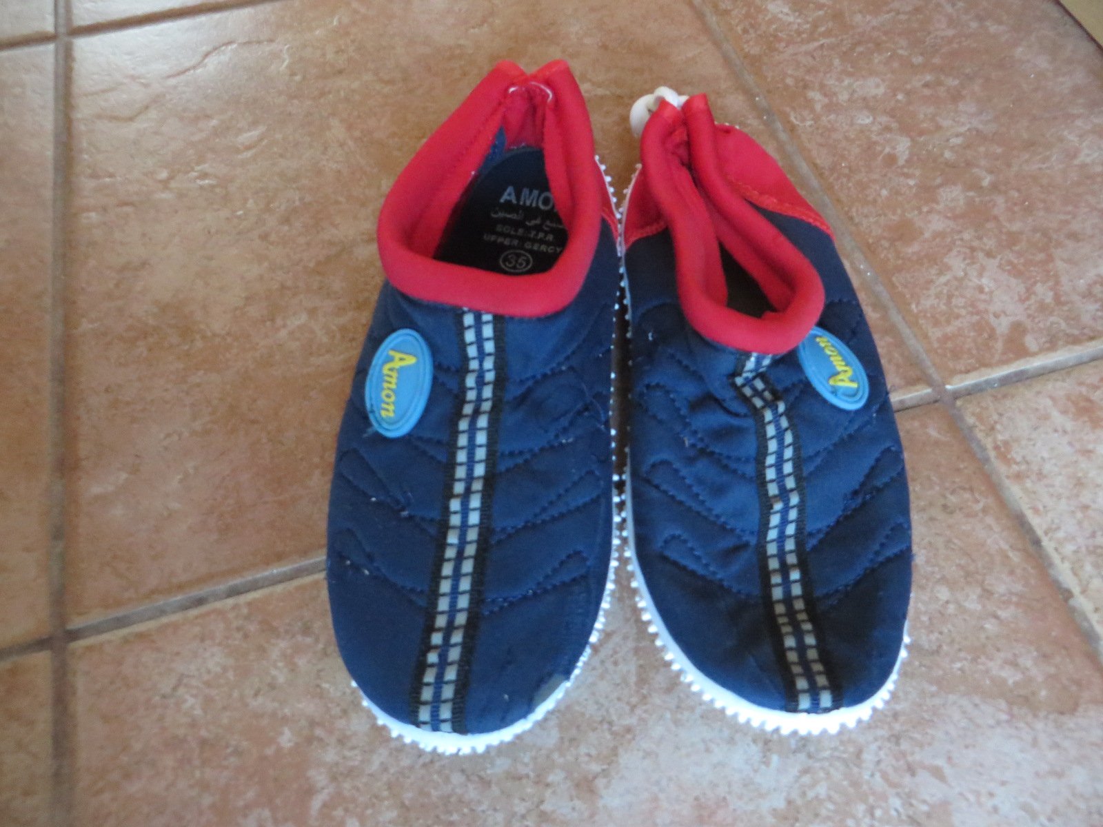 Predám minimálne nosené topánky do vody, s pevnou podrážkou na chodenie po kamenistých plážach. Sú vhodné ako pre chlapčeka, tak pre dievčatko. Veľ. je 34/35, ich vnútorná dĺžka je 22,5 cm. Kupovali sme ich v zahraničí pri mori, boli využité pár krát. Sú ako nové.