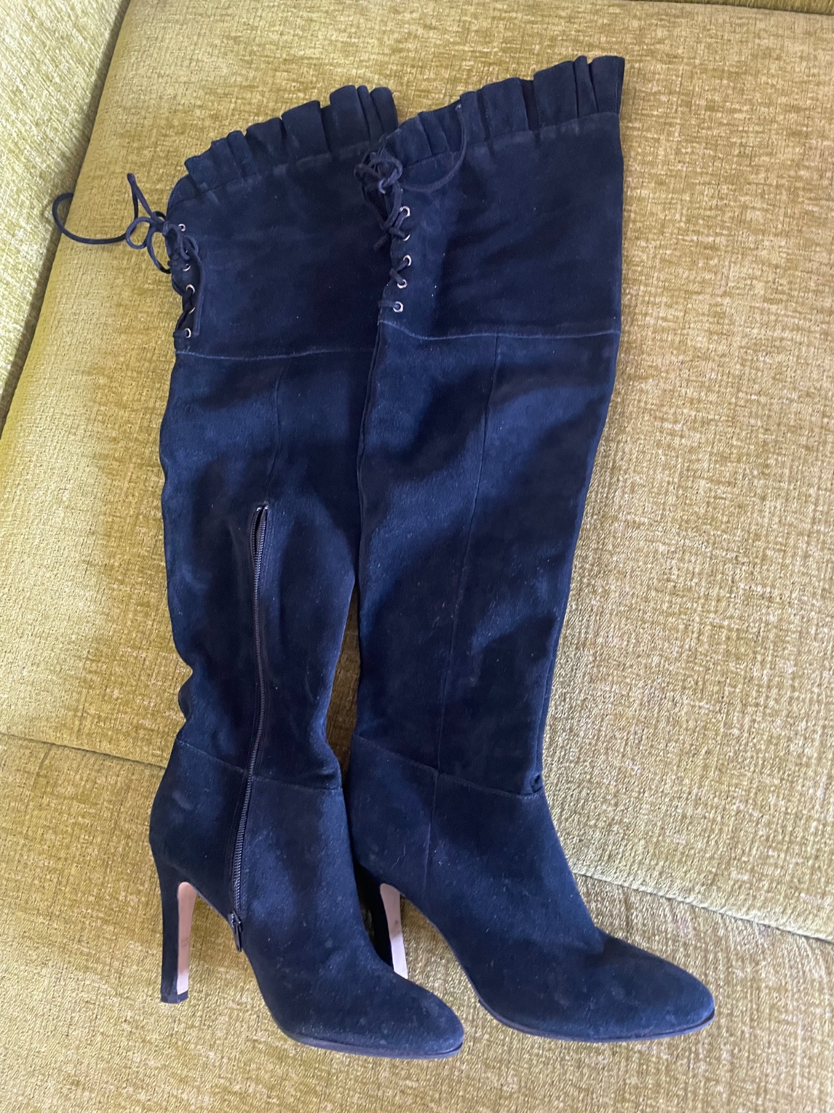 Pekne čižmy vysoke malinko nosene len chybycka krasy cely ten spodo ako je opatok sa odlepuje treba zalepit .(foto)