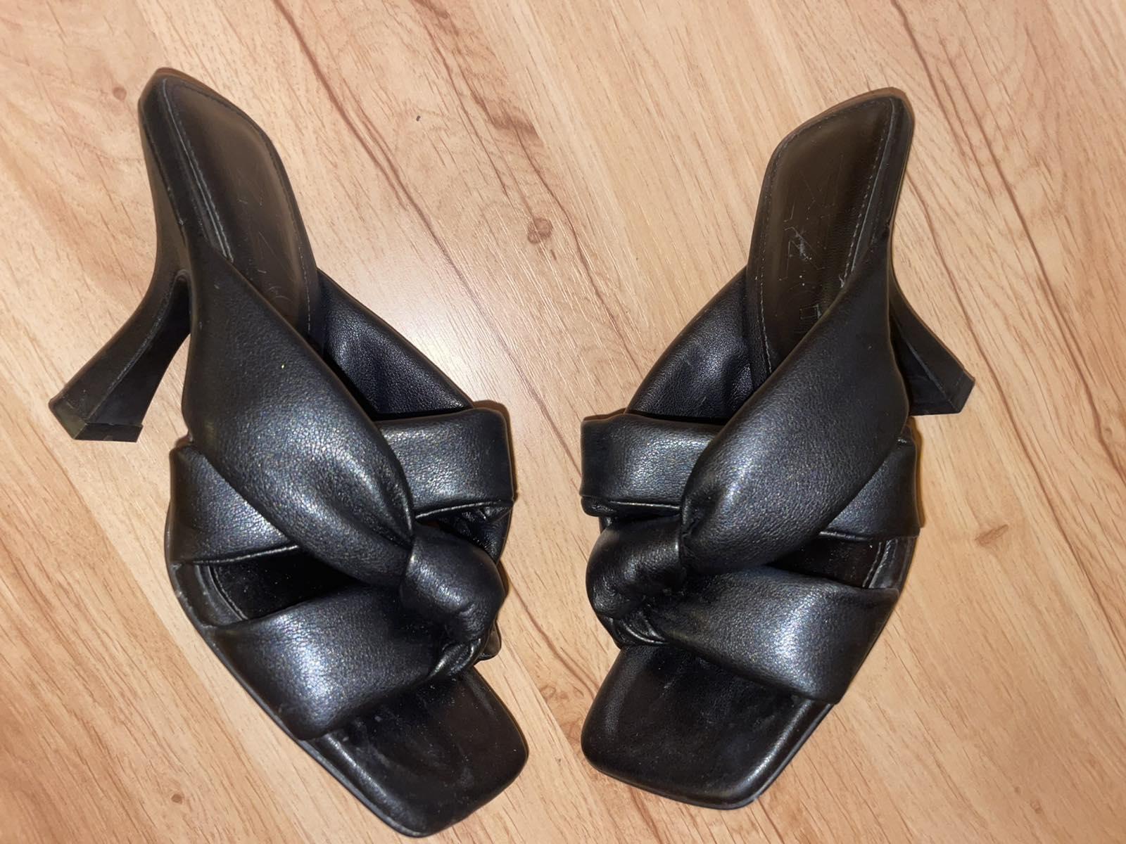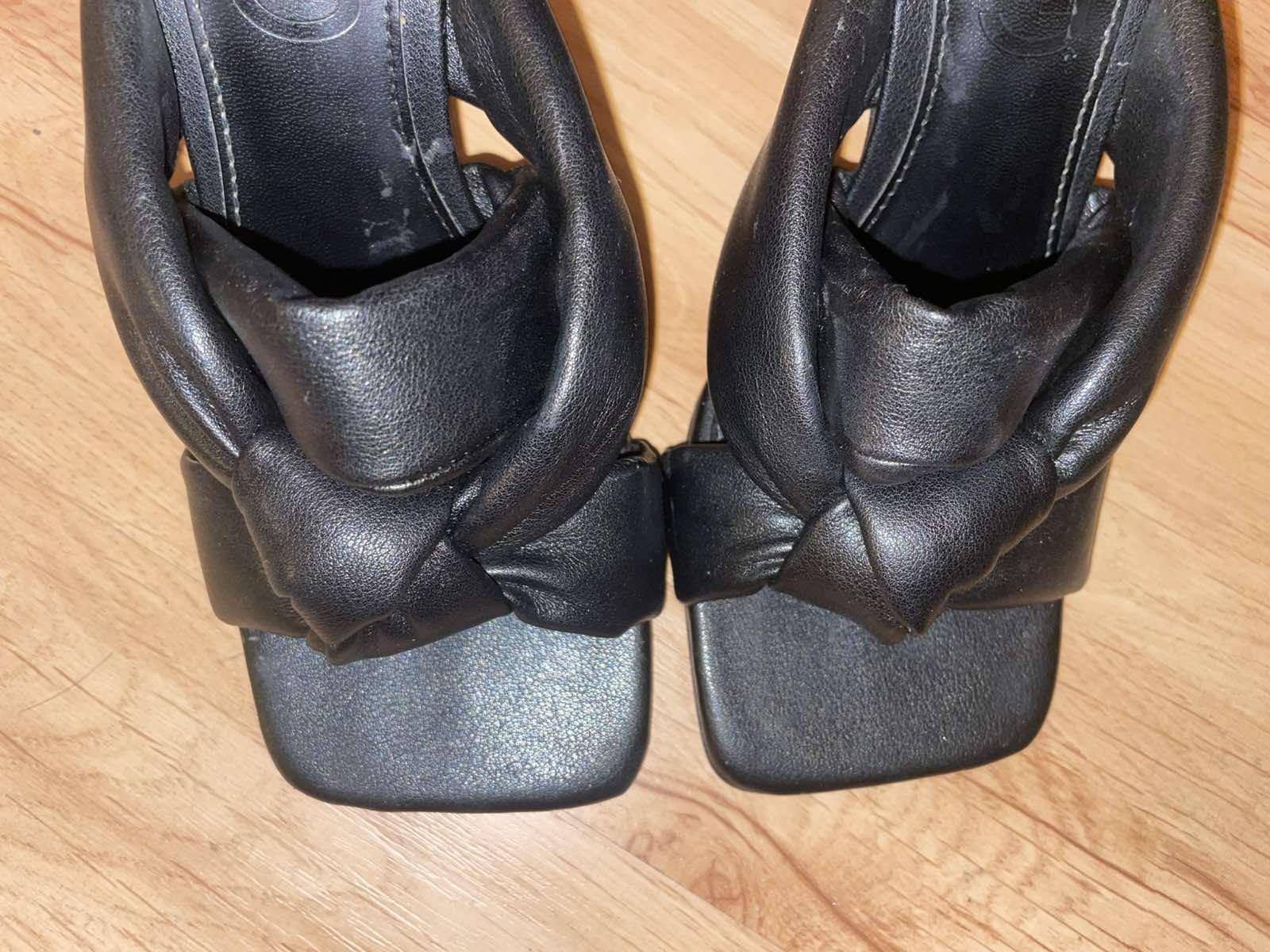 Výborný stav, čierne, koženkove, pohodlné, extra mäkké, polstrované pásiky, veľkosť 36