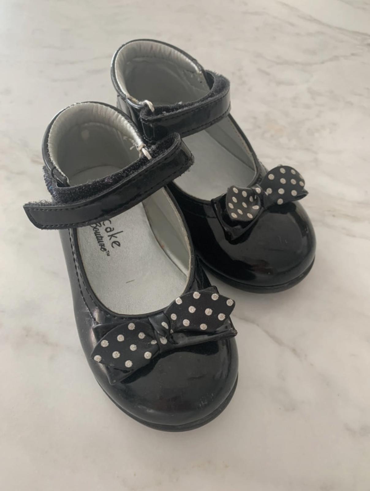 Predám nosené, dievčenské čierne topánočky - lakovky pre malú parádnicu. Veľ. je 21, vnútorná dĺžka je 14 cm. Pravá je vpredu trochu šuchnutá, cena je tomu prispôsobená.
