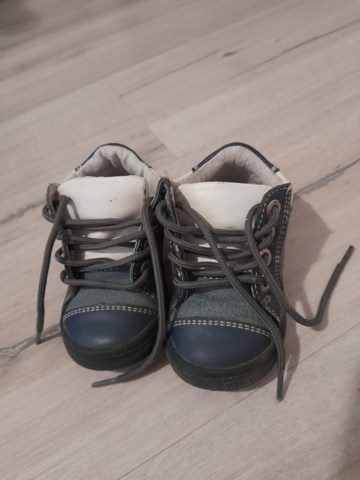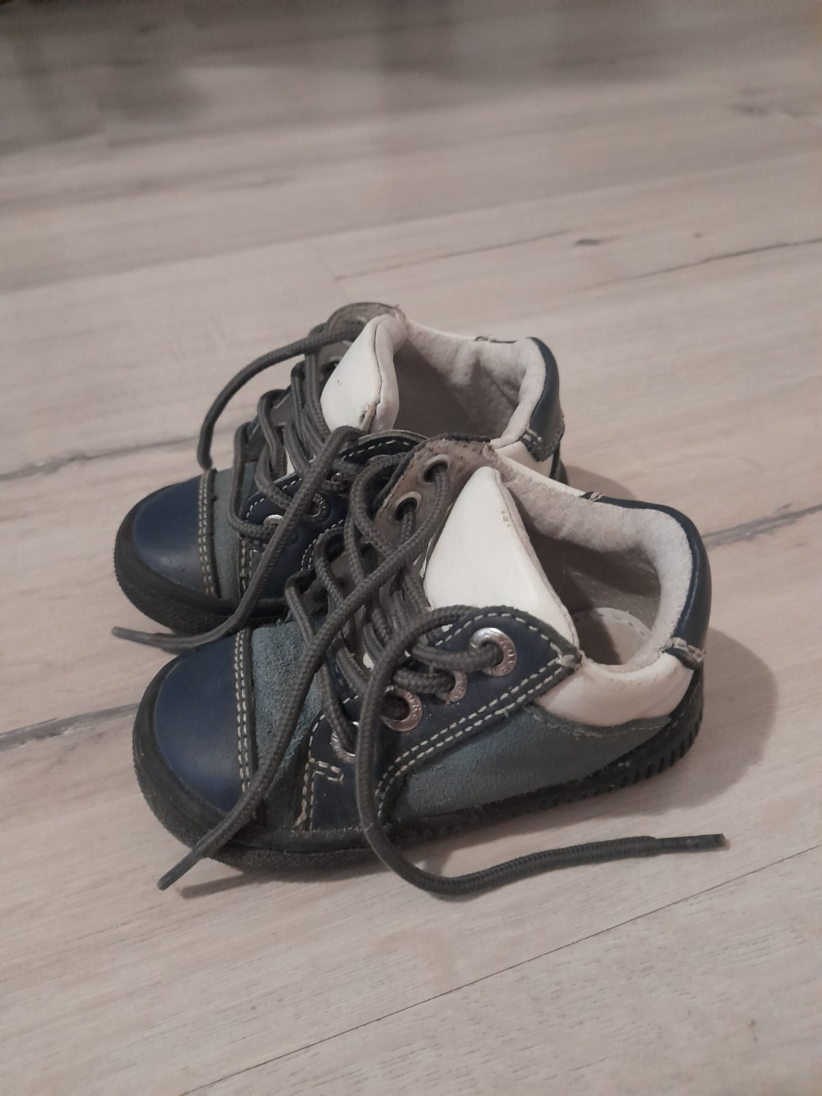 Kožené topánky vhodné aj pre prvé kroky. Podrážka je ohybná a špička odolná proti okopaniu. Päta spevnená. Vnútro - koža. Zvršok - brúsená koža. Vyberateľná stielka - koža. Veľkosť 19. Vnúto...