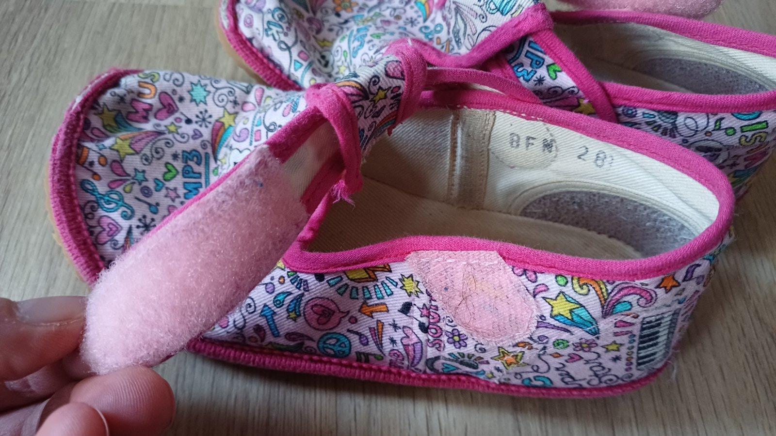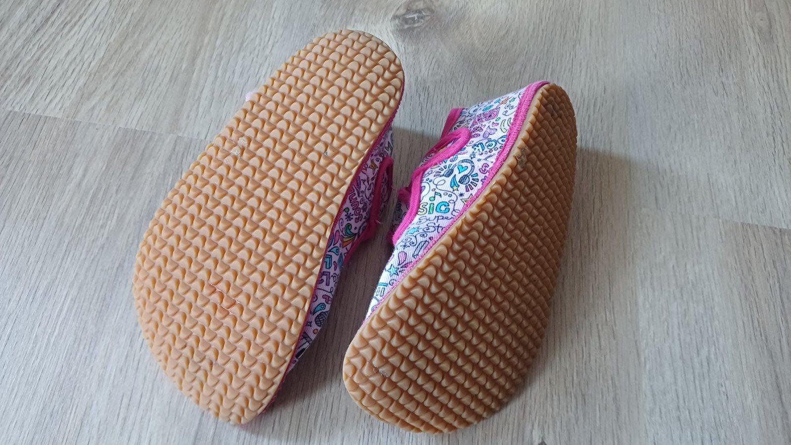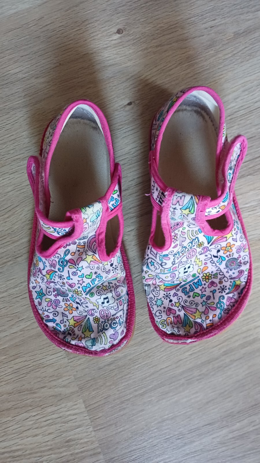 Posuvam barefoot papucky po dcere. Nosila ich v skolke niekolko mesiacov, mozno 3-4. Maju mierne znamky nosenia, vpredu trosku osuchane, necistila som ich, nejake skvrnky mozu byt. Celkovo stale su...