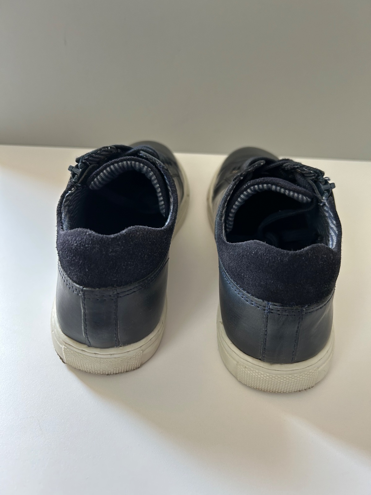 Chlapčenské kožené topánky tmavomodrej farby.