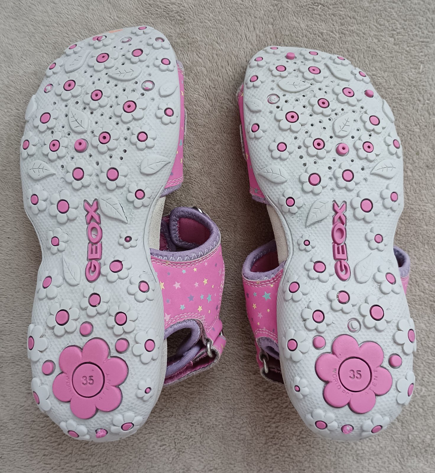 Ponukam uzasne sandalky, so super koze a vybornou podrazkou. Kto pozna znacku Geox, vie o jej kvalite. Kupíla som ich dcere na natacanie klipu Mira Jarosa - Je tu leto, potom sme na ne trochu zabud...