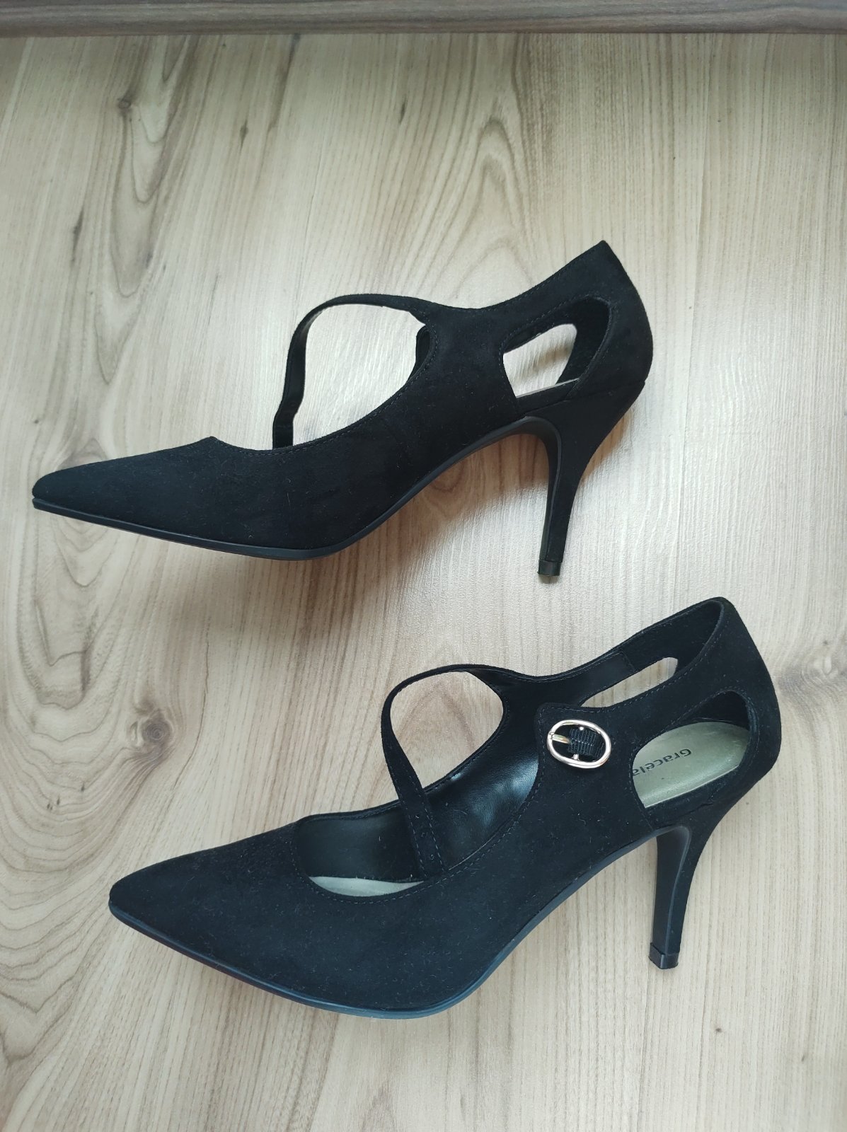 Ponúkam na predaj jeden krát obuté semišové lodičky. Veľkosť opätku asi 10 CM viď foto. Predávam lebo po zlomenine členku nemôžem nosiť na vysokom opätku. Top stav.
