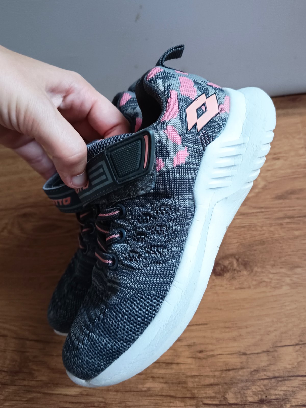 Látkové, ľahké a vzdušné tenisky. Super sa dajú vyprať práčke. Zapínanie na suchý zips šnúrky len imitácia. Biele podrážky. VD 18,5 cm - 19cm