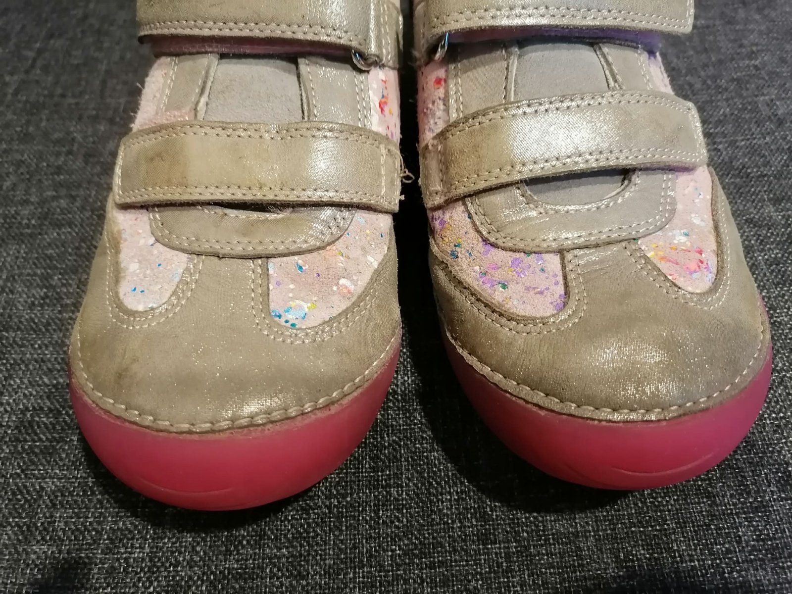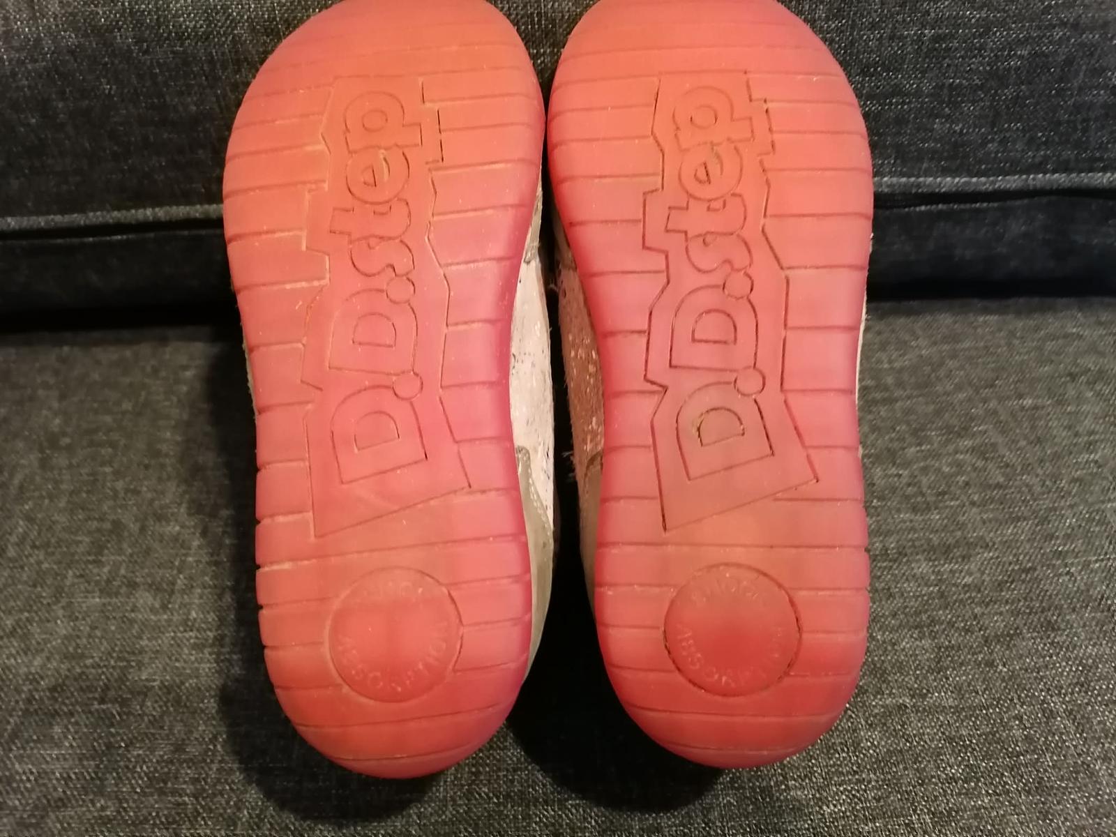 Predám dievčenské topánky DD Step - zachovalý nosený stav. Snažila som sa to nafotit z každej strany, aby ste mali ucelenú predstavu o ich stave. Vložky su zatmavnuté z ponožiek (dcérka rada nosila čierne), ale inak sú plne funkčné. VD je 21 cm (viď foto). Na donosenie isto ešte poslúžia. Všetky estetické nedostatky zohľadnené v cene. Cena bez poštovného