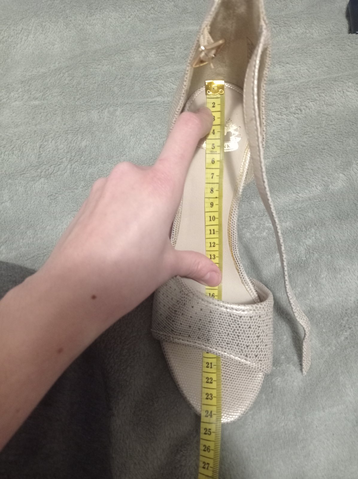 Krásne sandálky jeden krát obuté, krásne ukážu na nohe.Opätok 10,5cm, su vyššie ale pohodlné a dobre držia na nohe.Ako nové vôbec nezničene
