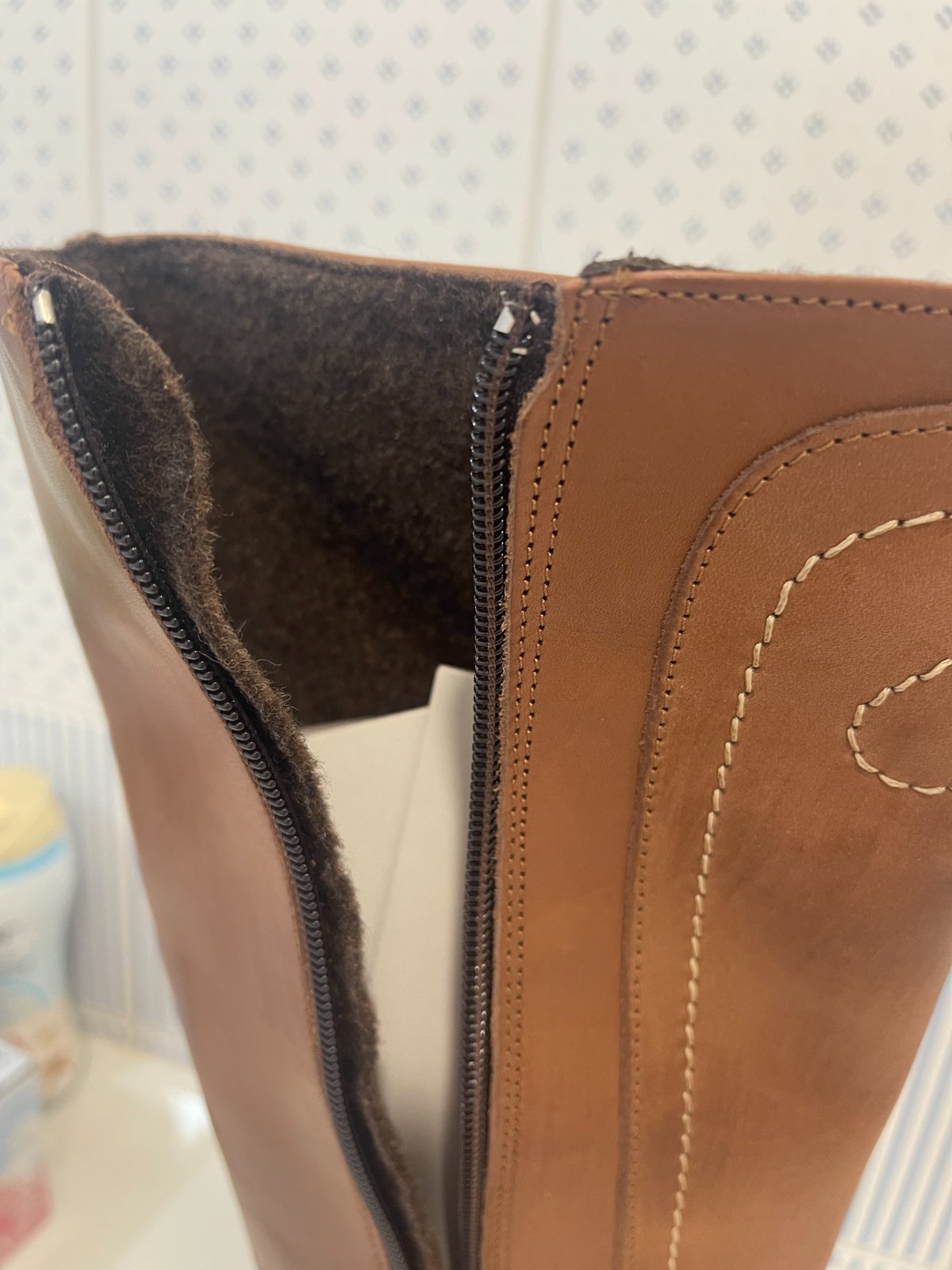 Predám pohodlné elegantné kožené čižmy hnedej farby, kvalitne vypracované a precízne štepovanie, vysoká sára, zapínanie na zips, veľkosť 38.