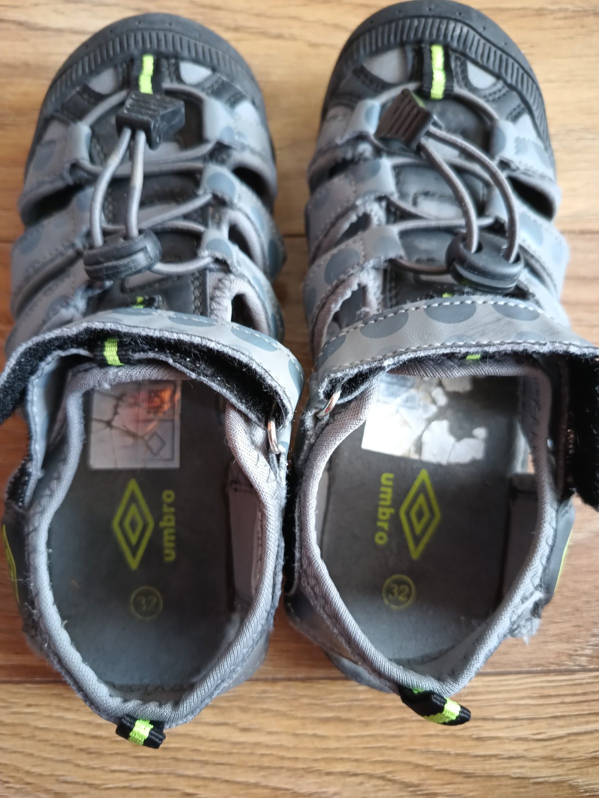 Predám sandálky zn. Umbro, veľkosť 32, nosené 1 dieťaťom 1 sezónu. Stav vidno na foto.