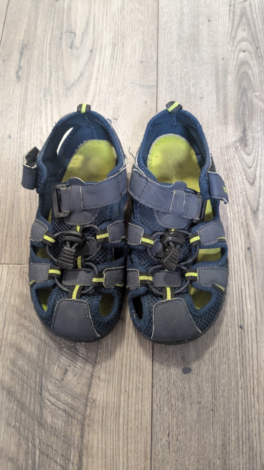 Predam nosene sandalky, nosili sme ich intenzivne, v lete von a v zime ako prezuvky v skolke. Mali sme ich v kazdej velkosti, su velmi ohybne a makke. Nie su do vody, ale ak sa v lete nahodou namocia, rychlo vyschnu. Suche zipsy drzia slabo, na jednej skoro vobec. Su na siroke nozky.