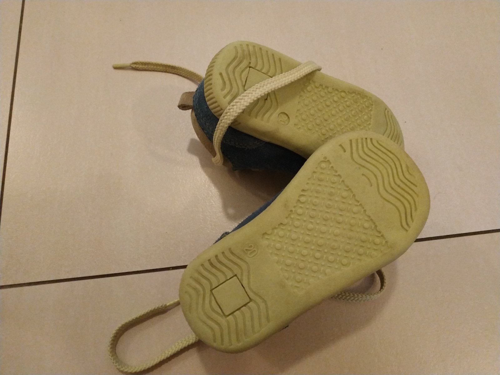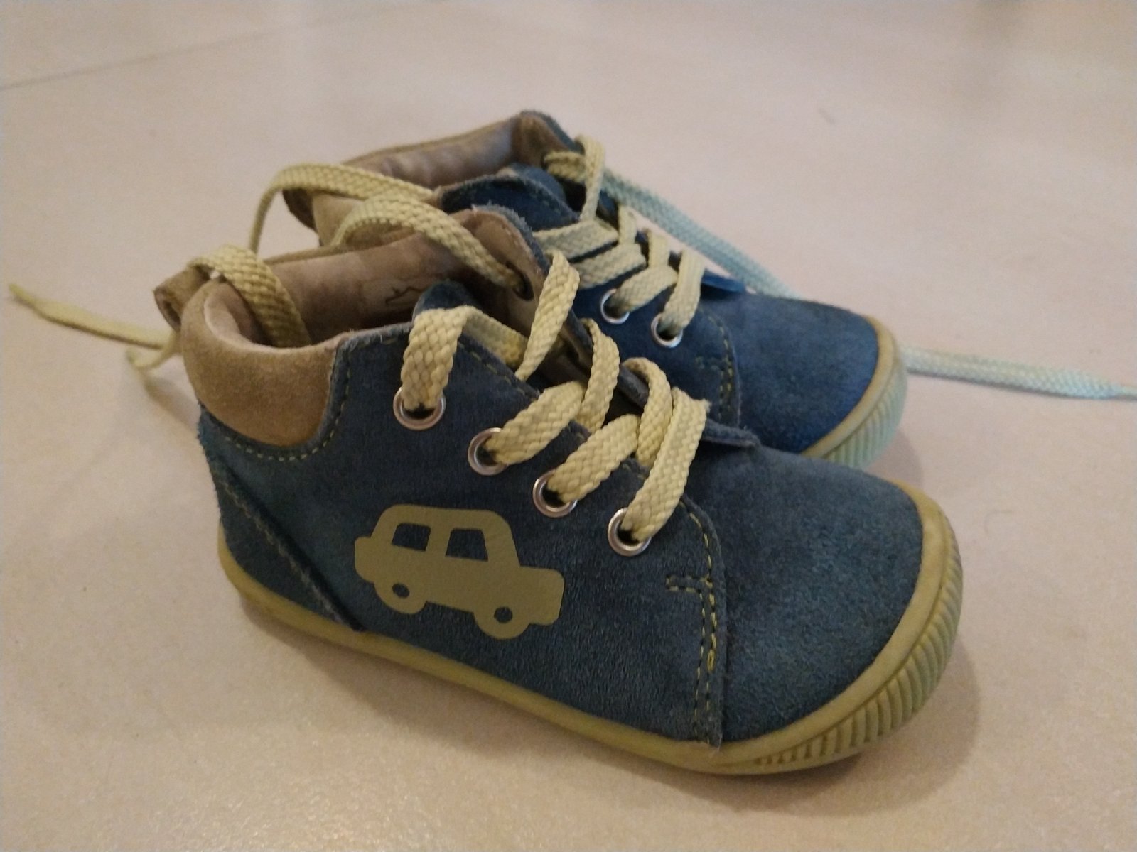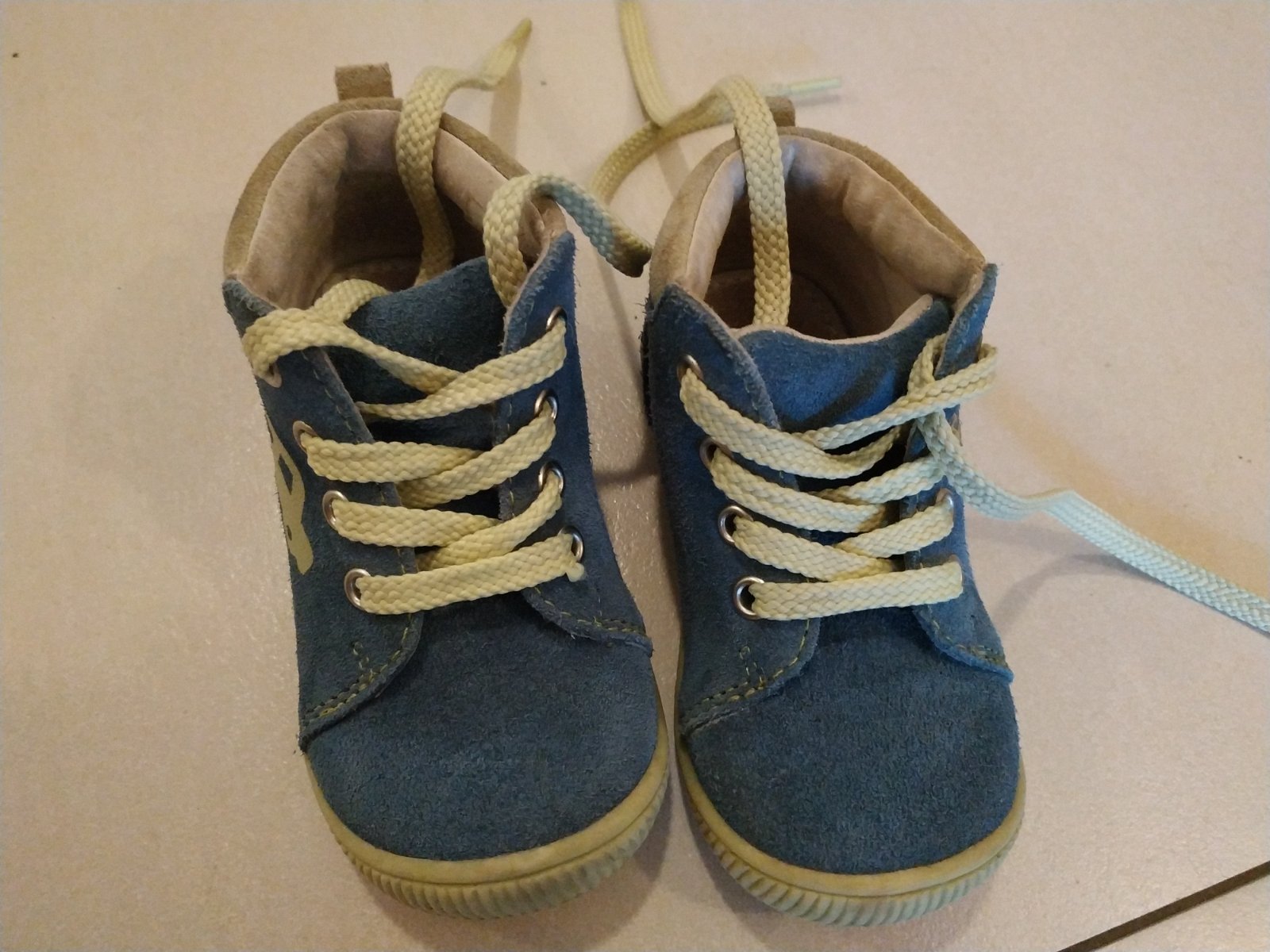 Celoročné topánky vyrobené z prémiovej brúsenej a prírodnej kože v modrom odtieni, doplnené bledomodrými pásikmi. Vo vnútri majú netvarovanú, vyberateľnú koženú stielku. Okrúhla podošva má jemný pr...