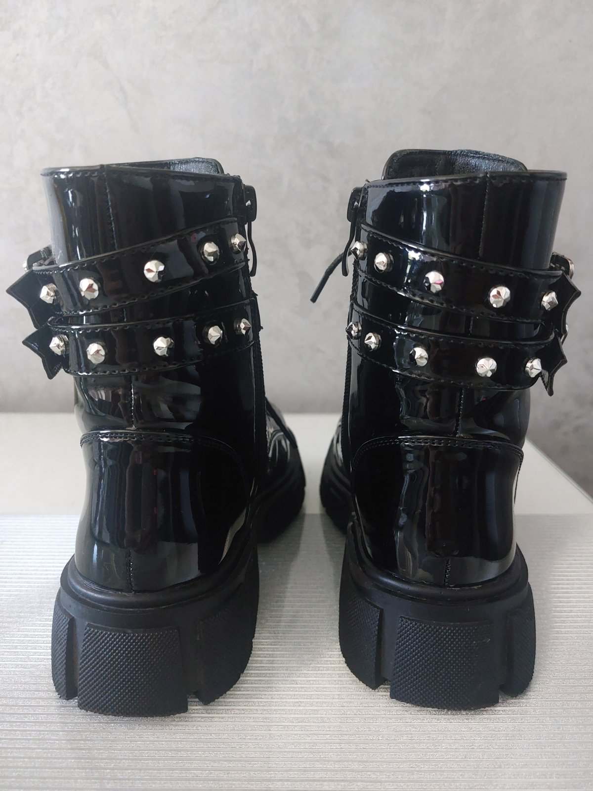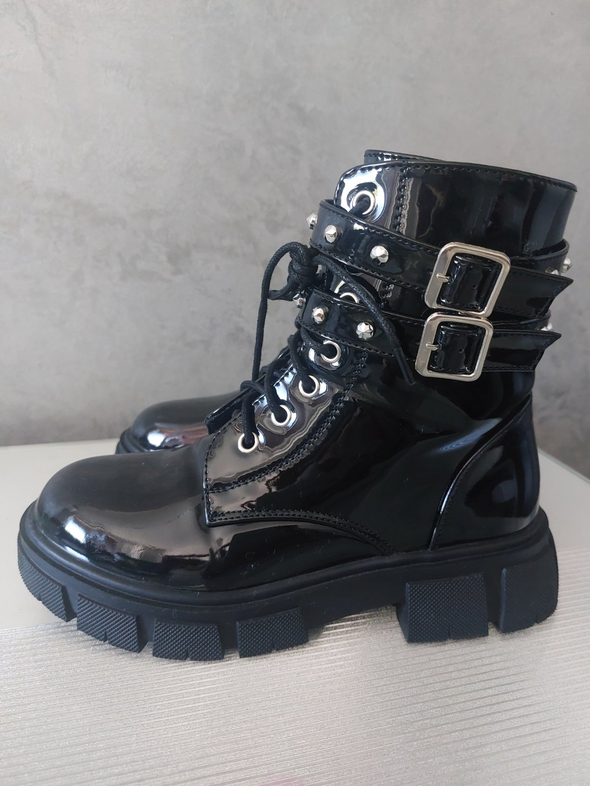 Nosené málo, no majú jemné šuchnutie, ktoré ale pri nosení nevidno, preto zohľadnené v cene, sú to lakovky. Sú mierne zateplené