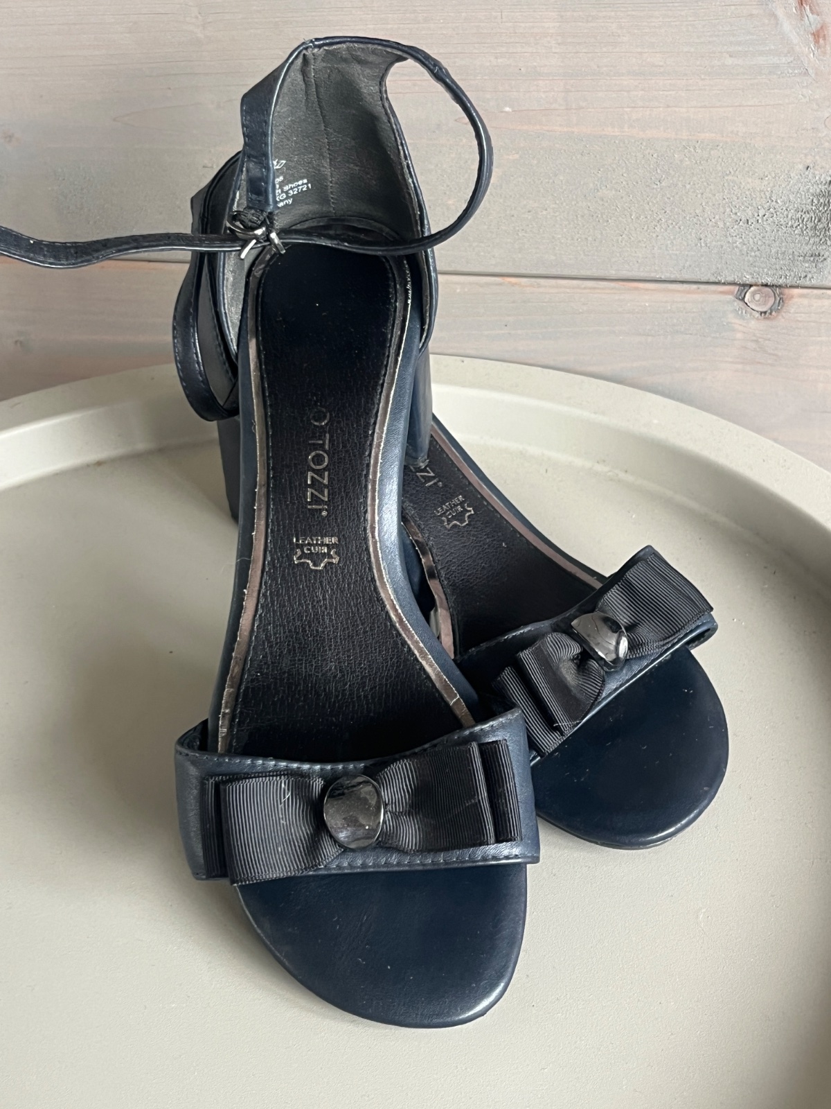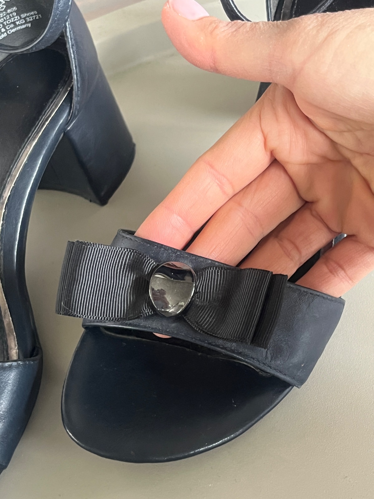 🍃Predám krásne, hlboko tmavomodré (navy) sandále značky Marco Tozzi na stabilnom block podpätku. Sú vyrobené z kvalitnej kože (stielka má označenie Leather Cuir).