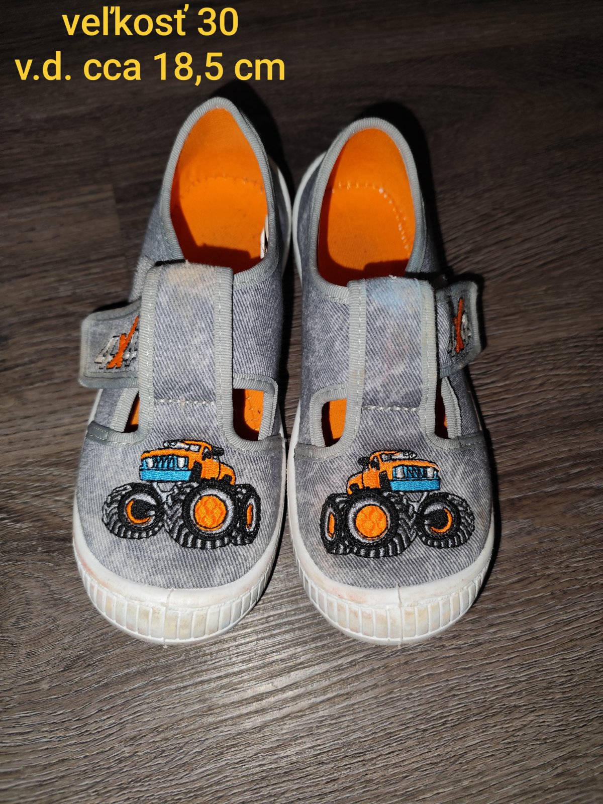 Papuče po jednom dieťati nosené v škôlke. Kupované v CCC, pôvodná cena 19,99€, veľkosť uvedená 30, vnútorná dĺžka cca 18,5 cm.