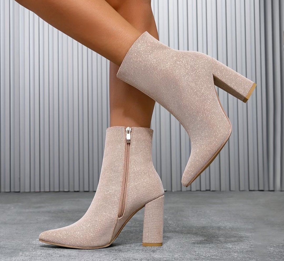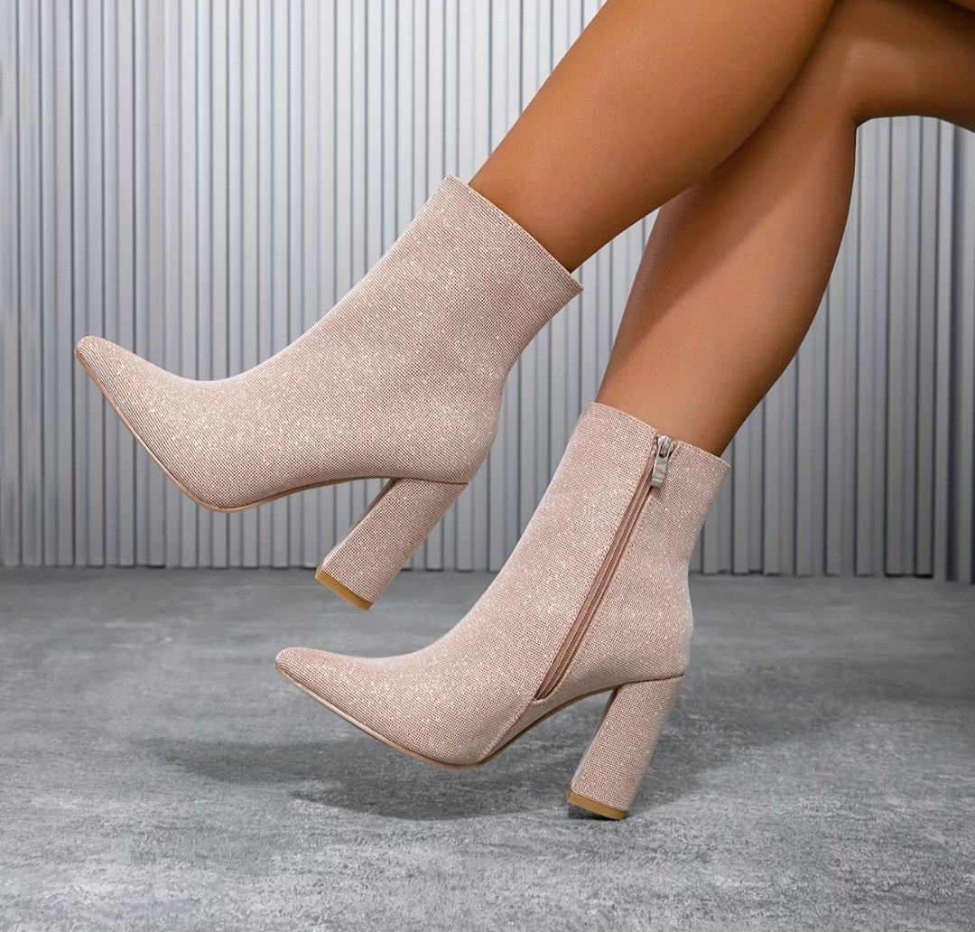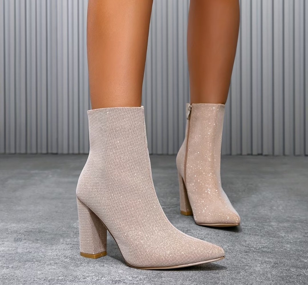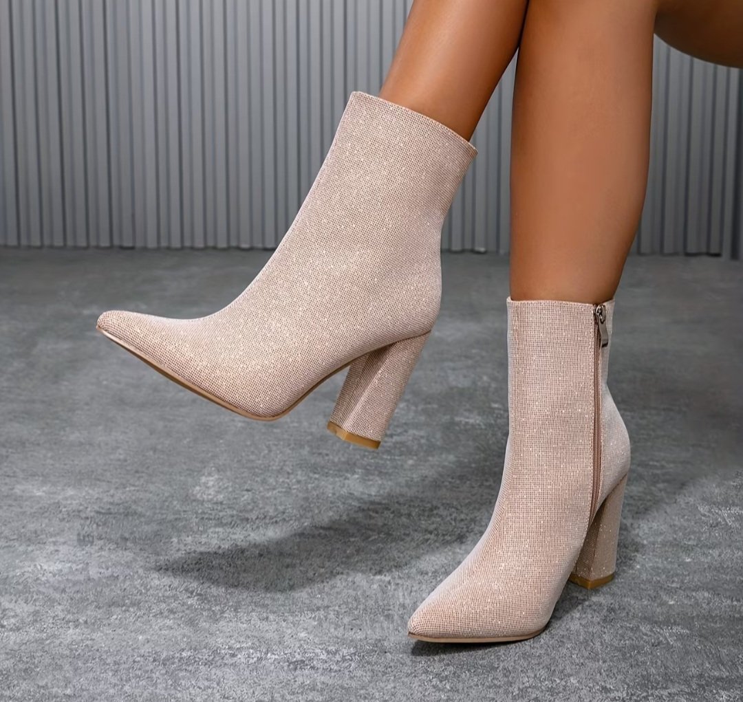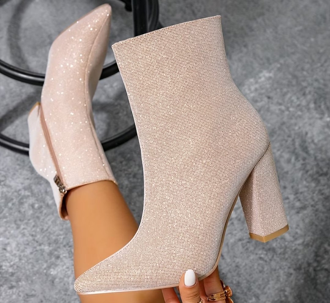 Béžové/slonovinovo-biele/lesklé špicaté ČIŽMY