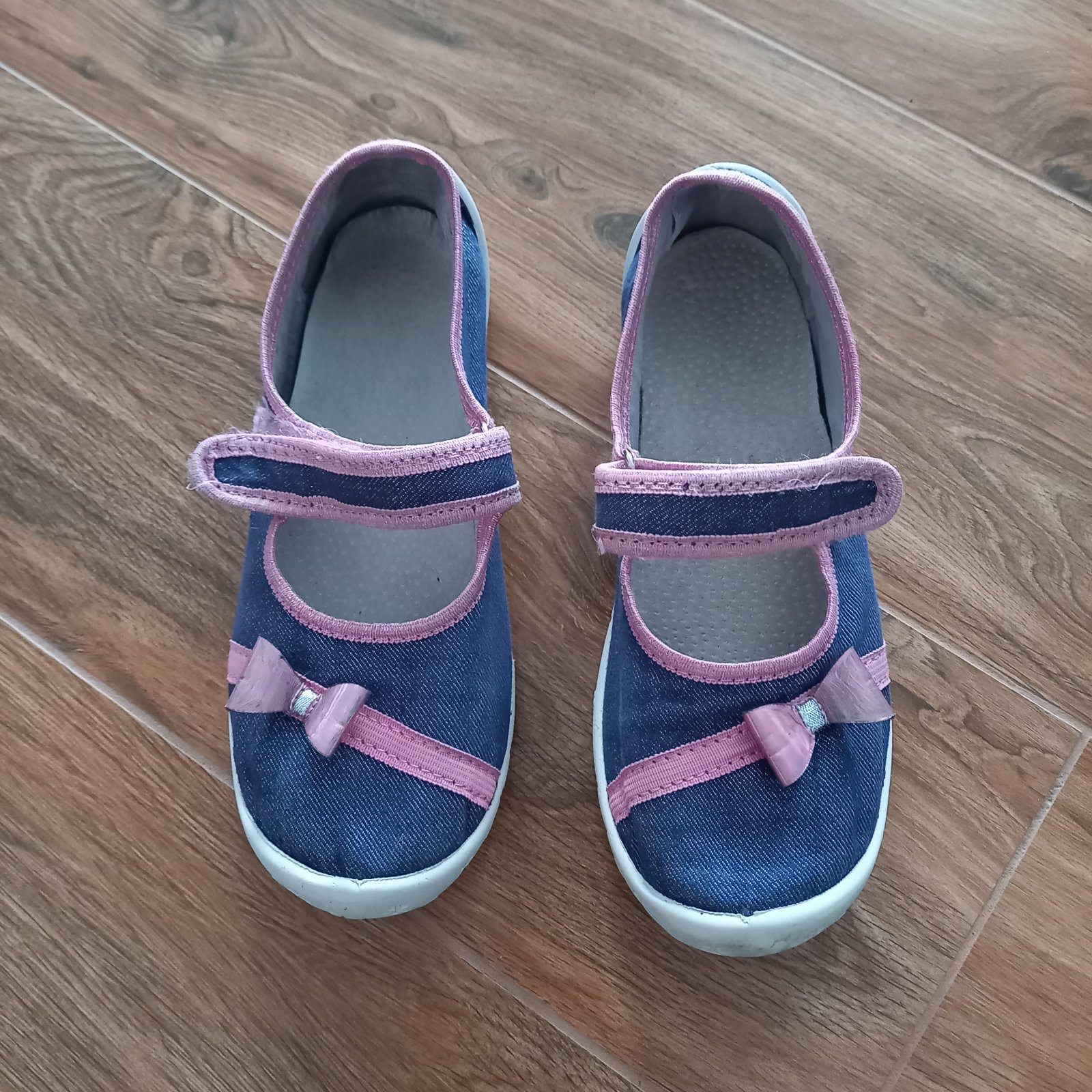 Detské papučky z prírodného textilného materiálu sandálkového typu so zatvorenou špičkou. Podošva je vyrobená z mäkkého, ale odolného styroporu. Uzatváranie je na suchý zips veľkosť 17 = vnútorná d...