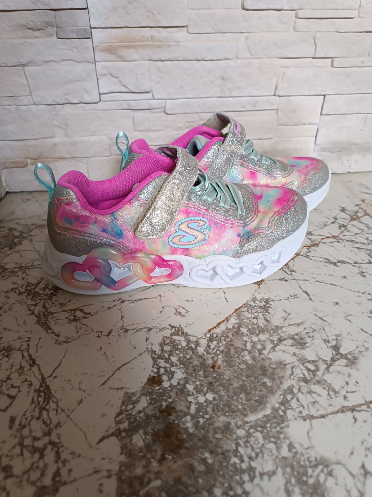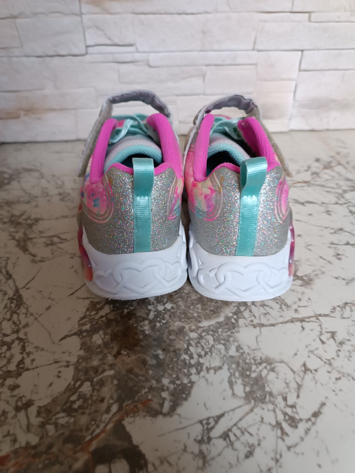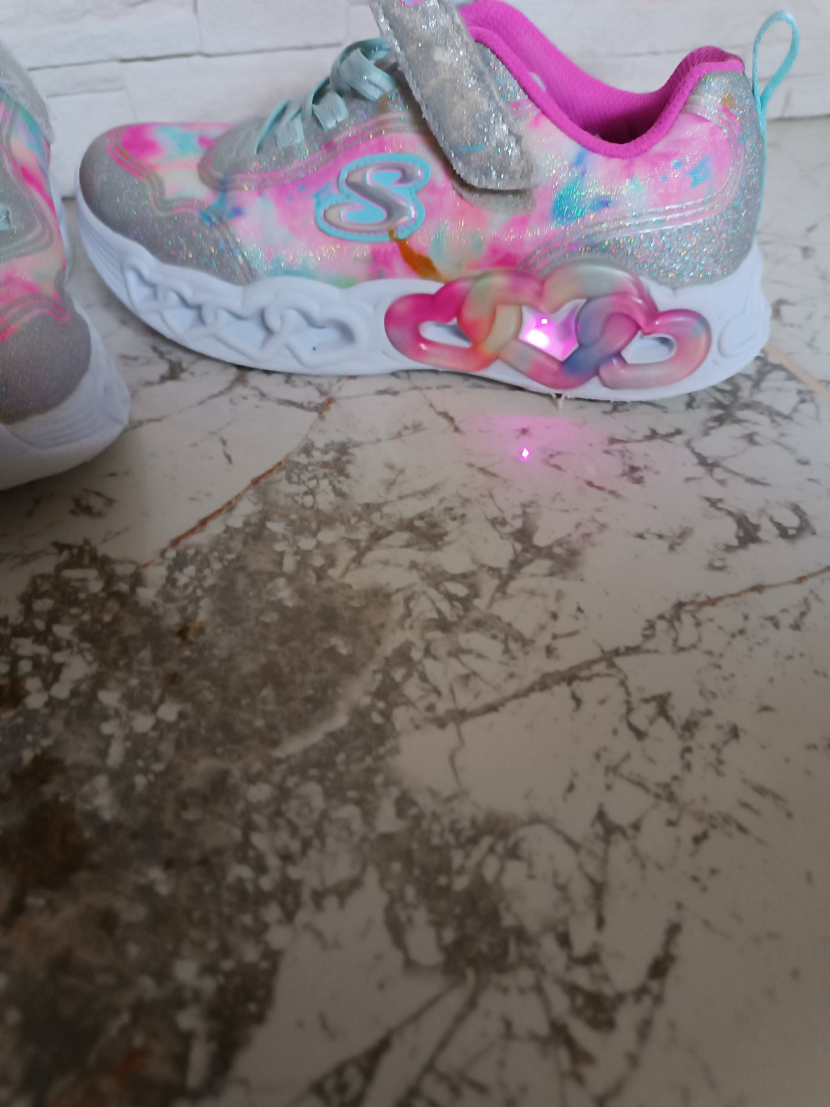 Úžasné topánočky kvalitnej značky. Pri chôdzi blikaju(modro-ruzovo). Nosené ale stále super stav, žiadne poškodenia l n kde-tu tá strieborná vrstva slabne . Vnútorná dĺžka 21 cm