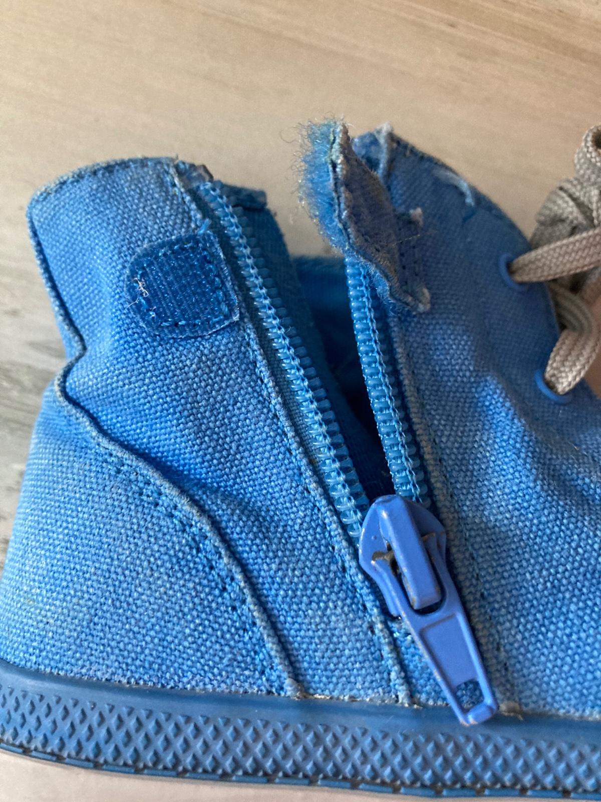 Plátené vysoké tenisky, vpredu gumené, na boku zips. Dobrý nosený stav, vnútorná dĺžka cca 16cm. Stav, detaily a miery viď na fotkách. Cena bez poštovného.