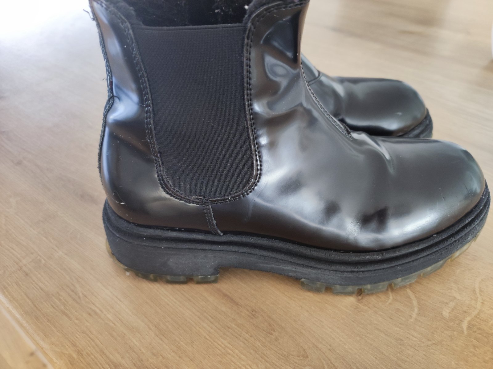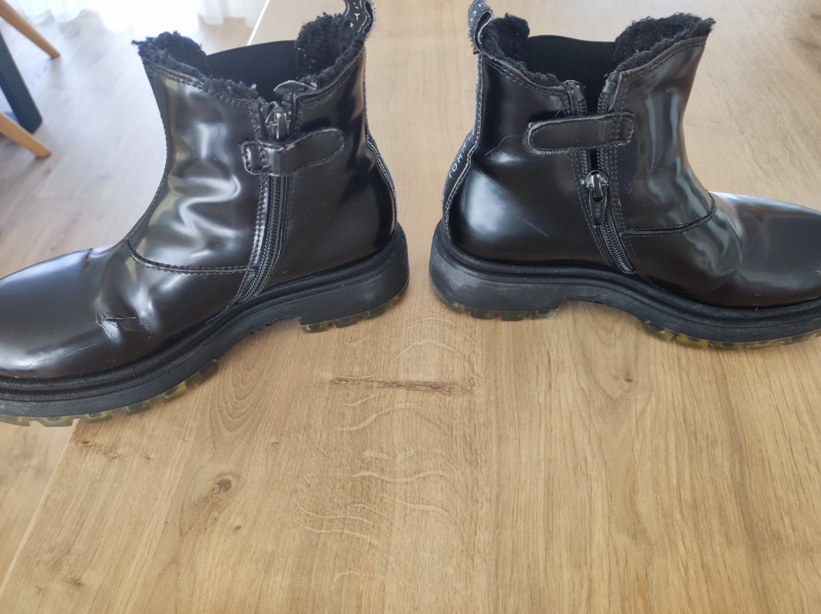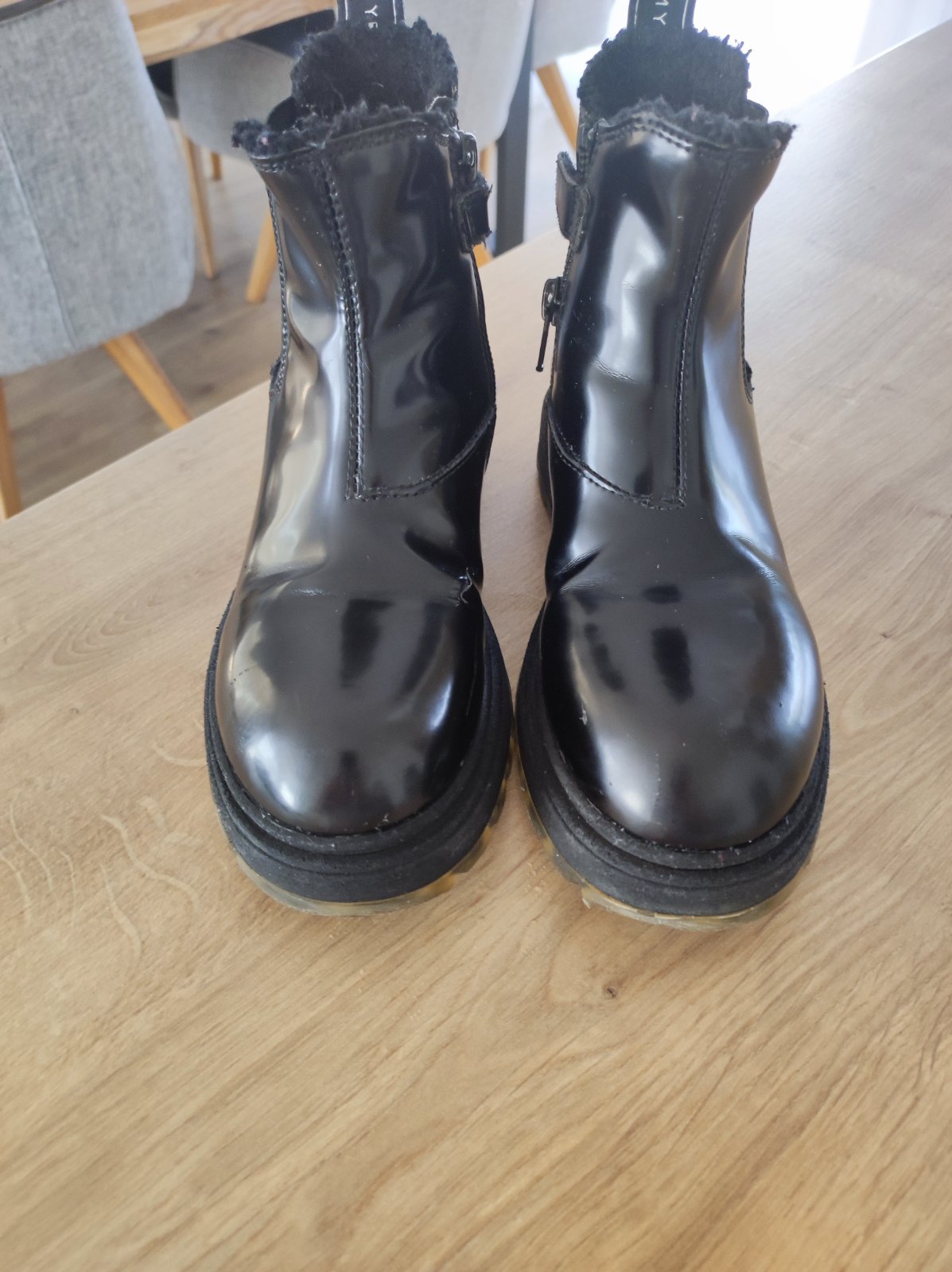 Štýlove čižmičky pre dievčatko. Nosenie vidno len na podrážke v oblasti päty viď foto a na jednej topánke je poškodenie. Dcéra zakopla na preliezke a je tam malé porezanie tiež vidno na foto.