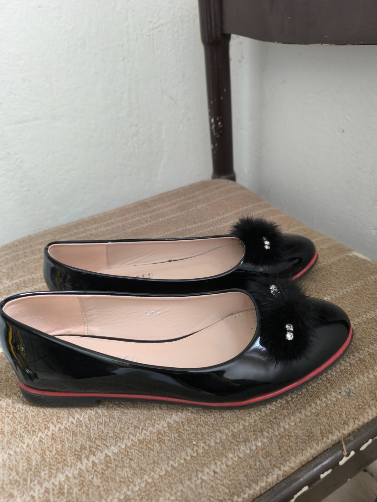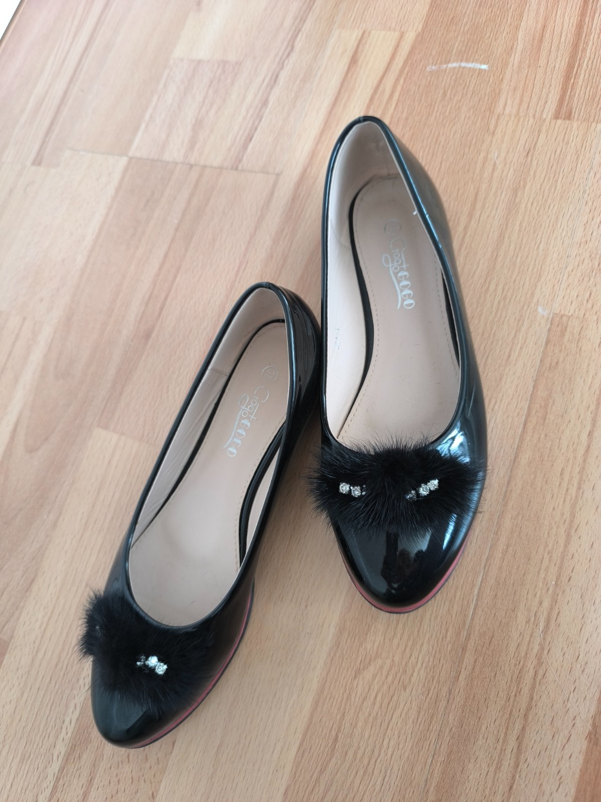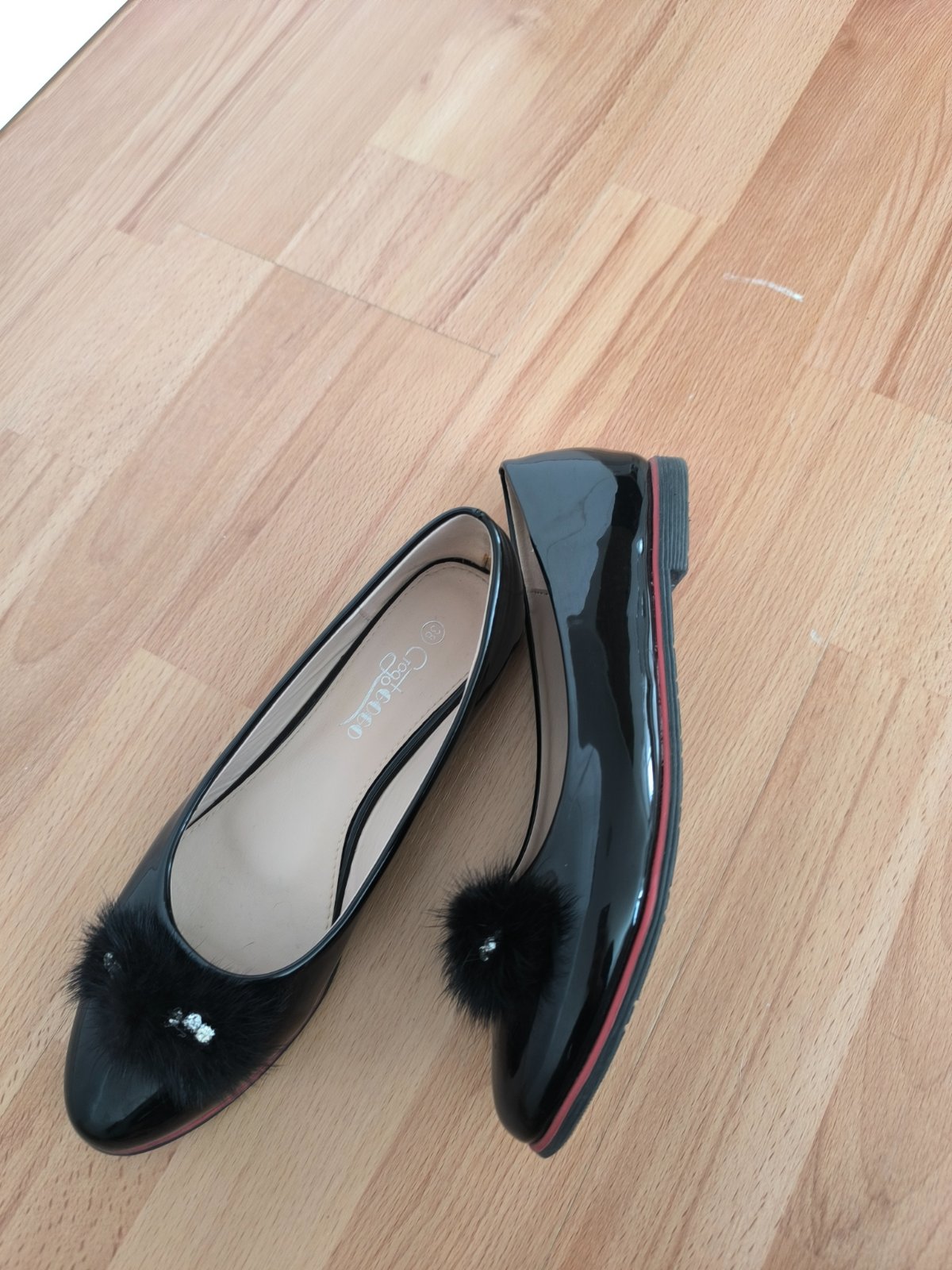 Čierne, lakované balerínky.Raz obuté